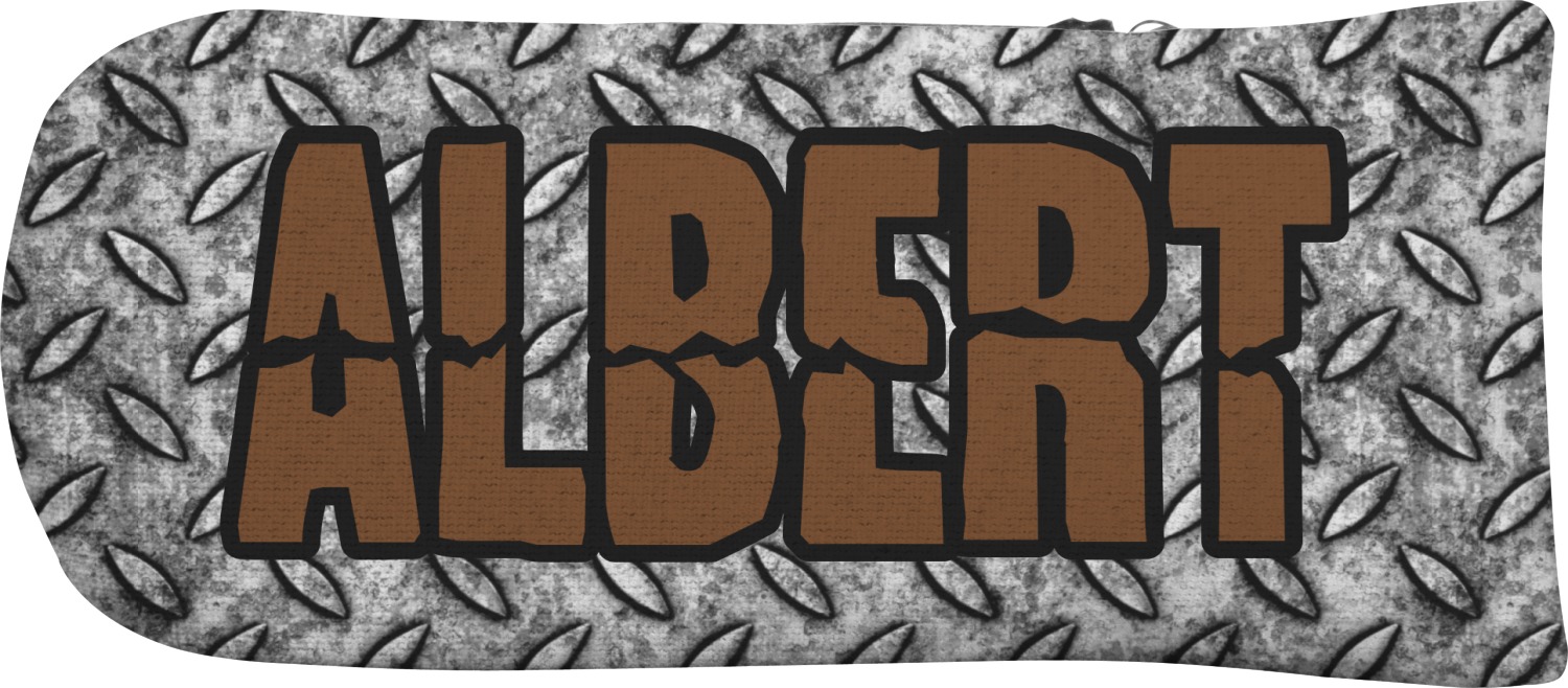 The design idea features a grungy diamond plate as the background. A diamond frame is the focal point of this design idea with your personalization in a grungy font. Nothing could get more manly than this.