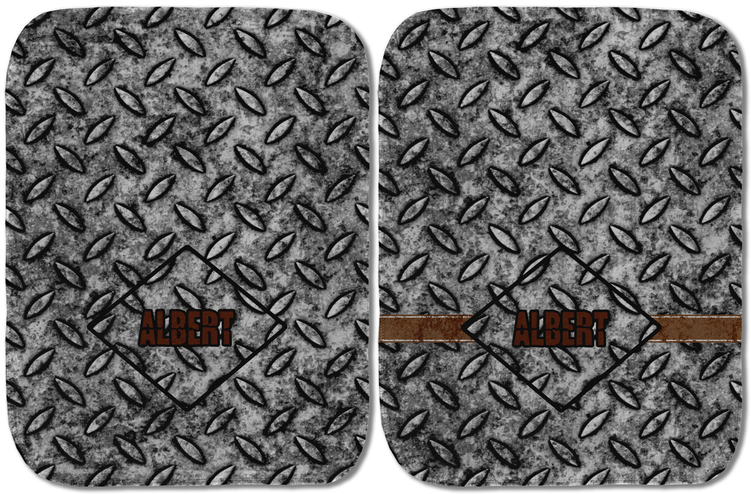 The design idea features a grungy diamond plate as the background. A diamond frame is the focal point of this design idea with your personalization in a grungy font. Nothing could get more manly than this.