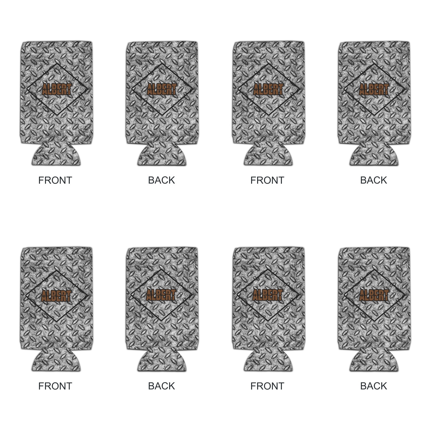 The design idea features a grungy diamond plate as the background. A diamond frame is the focal point of this design idea with your personalization in a grungy font. Nothing could get more manly than this.