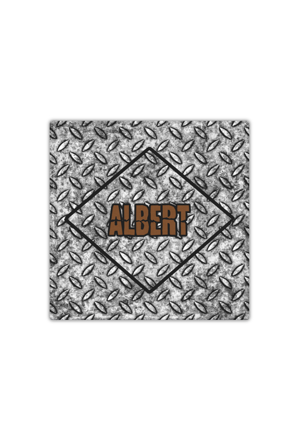 The design idea features a grungy diamond plate as the background. A diamond frame is the focal point of this design idea with your personalization in a grungy font. Nothing could get more manly than this.