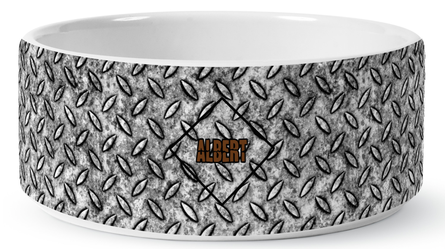 We carry these custom dog bowls in two available sizes: medium and large.The medium is 6 inches in diameter and 2.5 inches tall, and can therefore suit pets who eat up to 2.5 cups of food per meal. The large pet bowl is 7 inches in diameter and 3 inches tall, and suits pets who require up to 4.5 cups of food per meal.