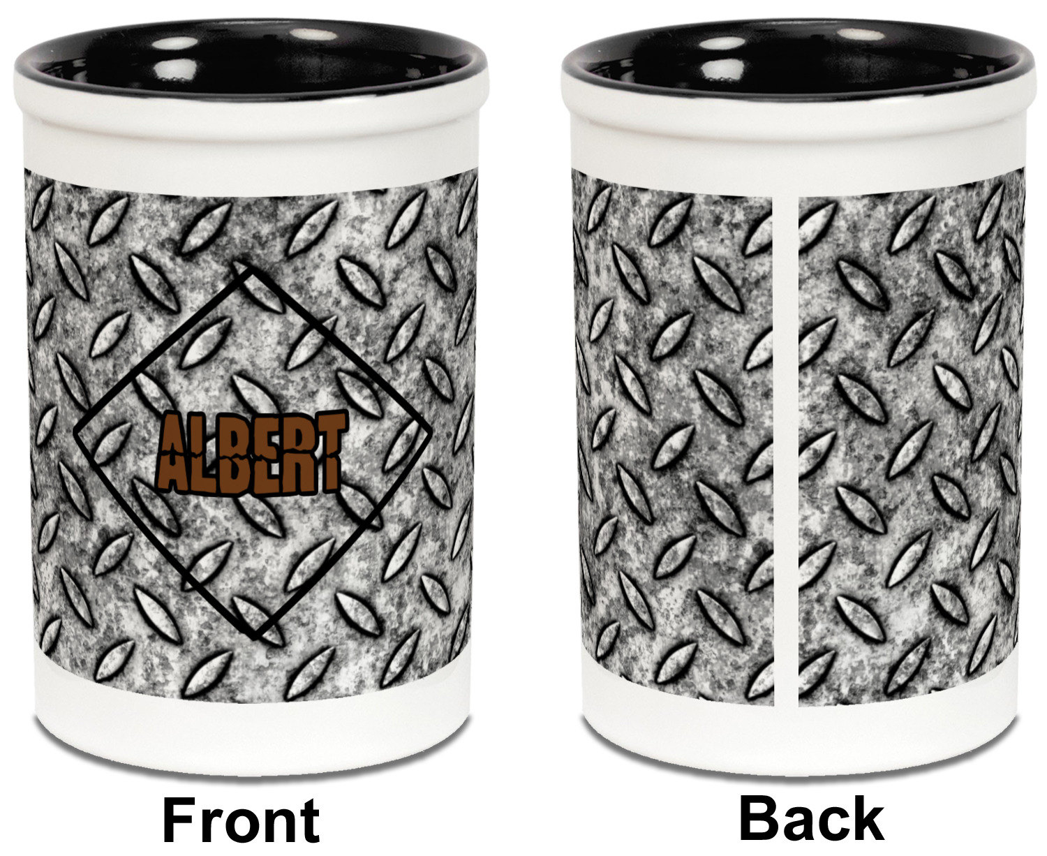 The design idea features a grungy diamond plate as the background. A diamond frame is the focal point of this design idea with your personalization in a grungy font. Nothing could get more manly than this.