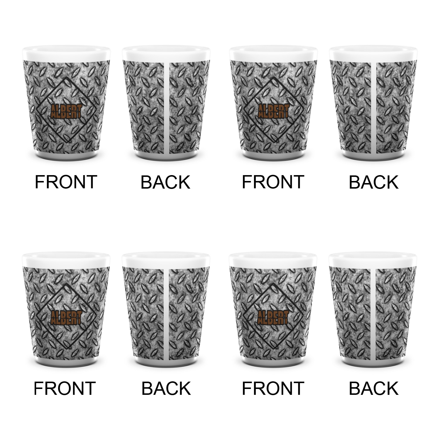 Made from ceramic these shot glasses are printed in full color with the design of your choice. These are a standard 1.5oz size and stand 2.25" tall. Available in a full white ceramic or a two-tone with a black color inside the shot glass. Buy a single or a set of 4, all of which can be designed separately to get you just what you want and need.