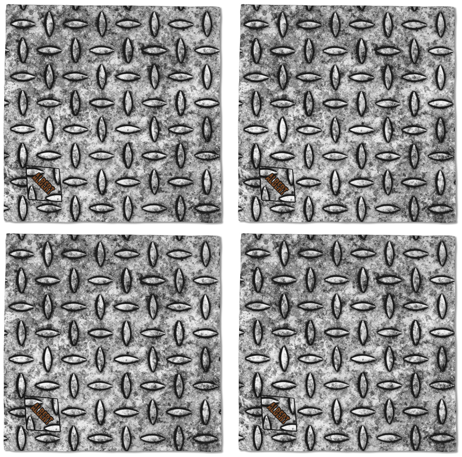 The design idea features a grungy diamond plate as the background. A diamond frame is the focal point of this design idea with your personalization in a grungy font. Nothing could get more manly than this.