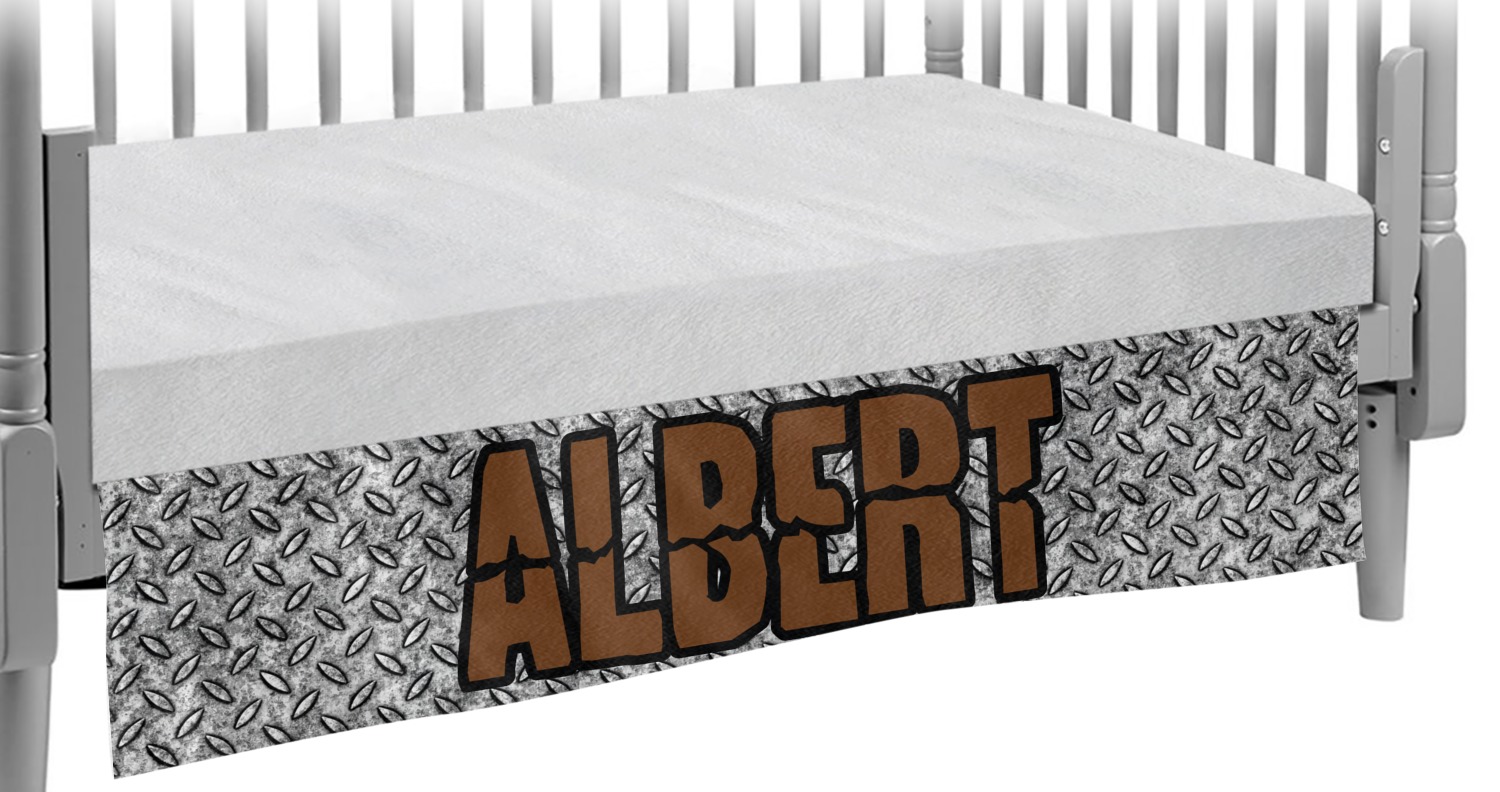 This baby crib skirt is made from two different materials and has split corners for easy placement and removal. The four corners are made from a soft, minky-like material, while the center is made of microfleece. The dual fabric makes this product durable, and still soft-to-the-touch. We provide you with the option of designing each of the four sides to be entirely unique, or to match one another, depending on your creative vision. Your personalization is displayed across the outside of the custom crib skirt, in vibrant colors. When inserted, each side panel drops 15" and is designed to touch the floor at its lowest setting.