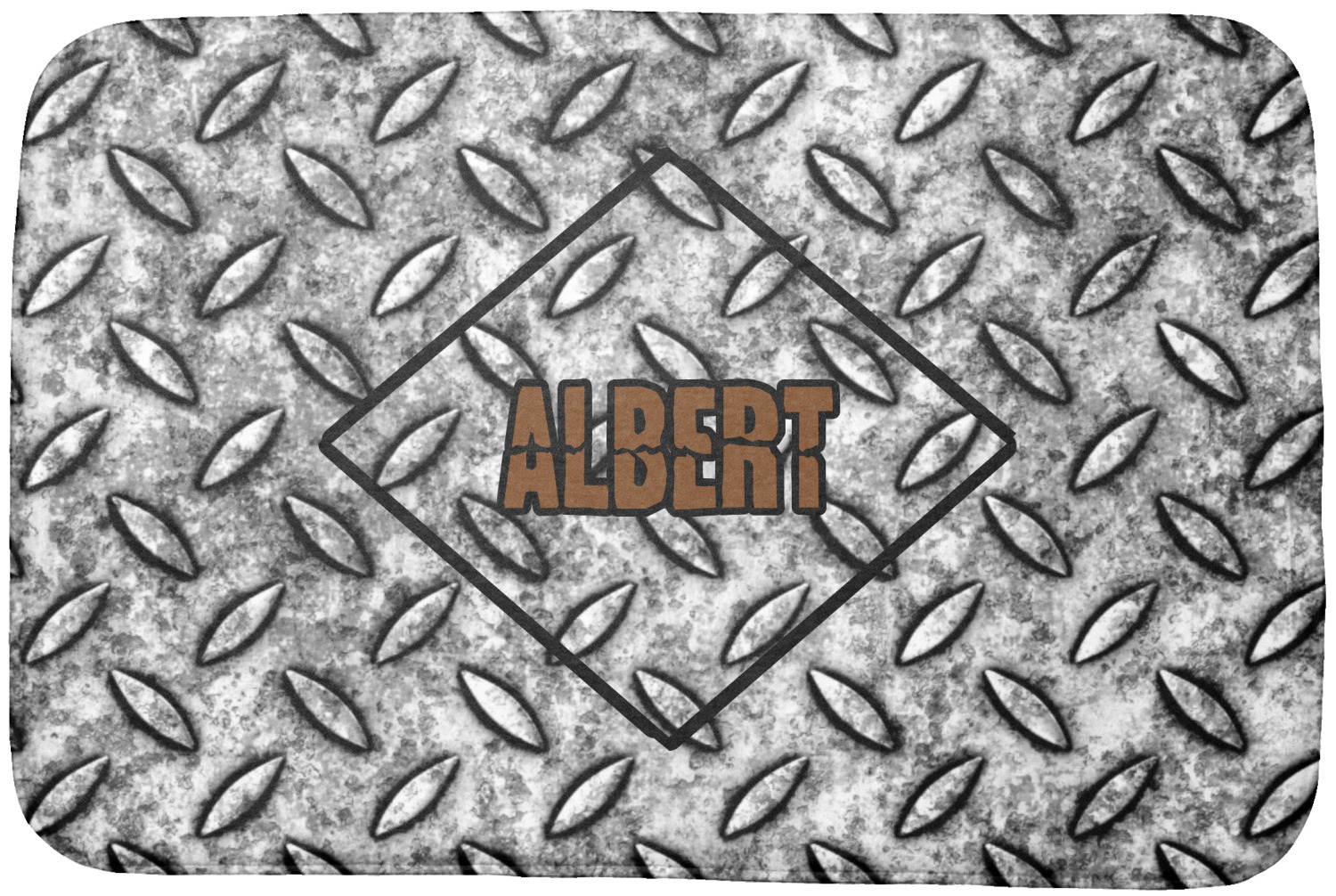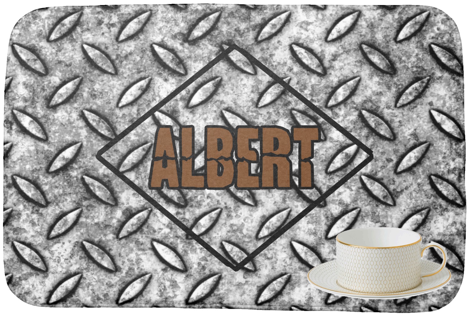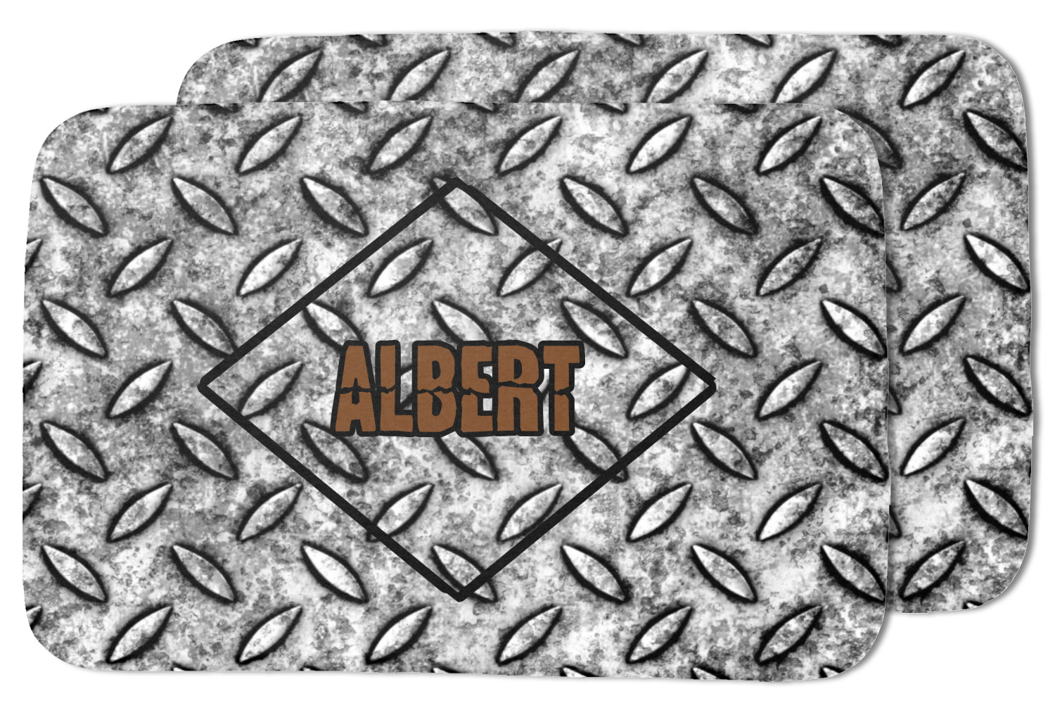 The design idea features a grungy diamond plate as the background. A diamond frame is the focal point of this design idea with your personalization in a grungy font. Nothing could get more manly than this.