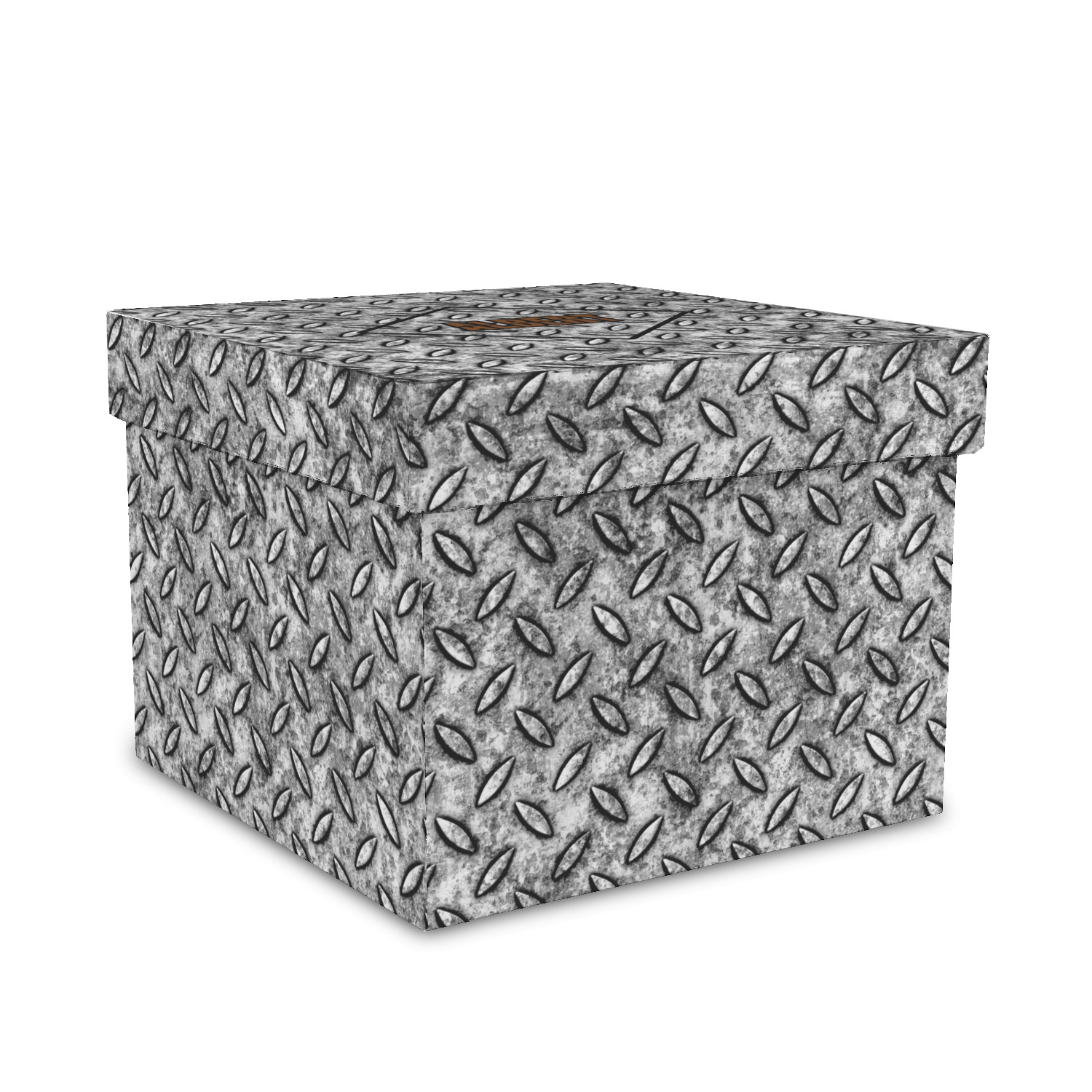 The design idea features a grungy diamond plate as the background. A diamond frame is the focal point of this design idea with your personalization in a grungy font. Nothing could get more manly than this.