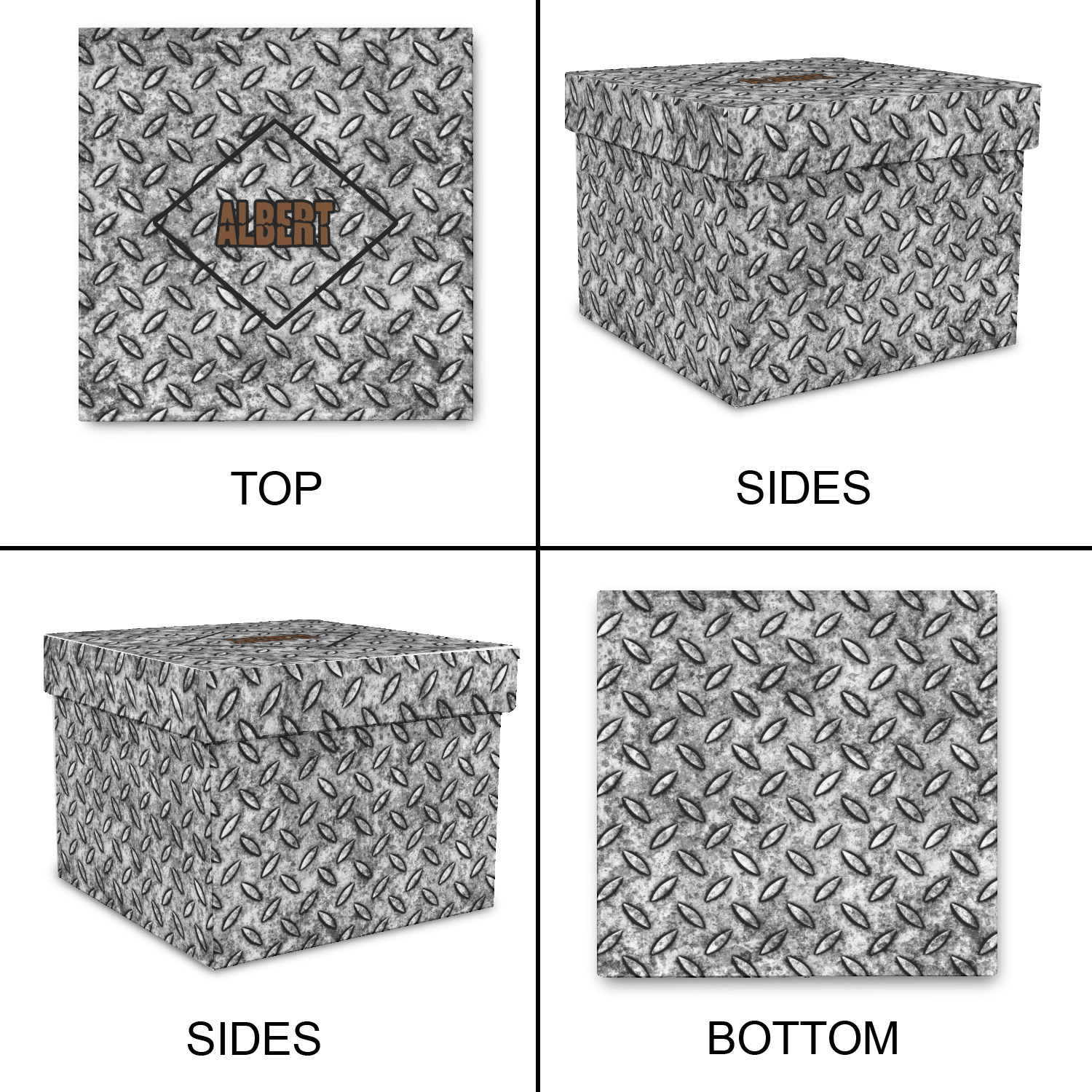 The design idea features a grungy diamond plate as the background. A diamond frame is the focal point of this design idea with your personalization in a grungy font. Nothing could get more manly than this.