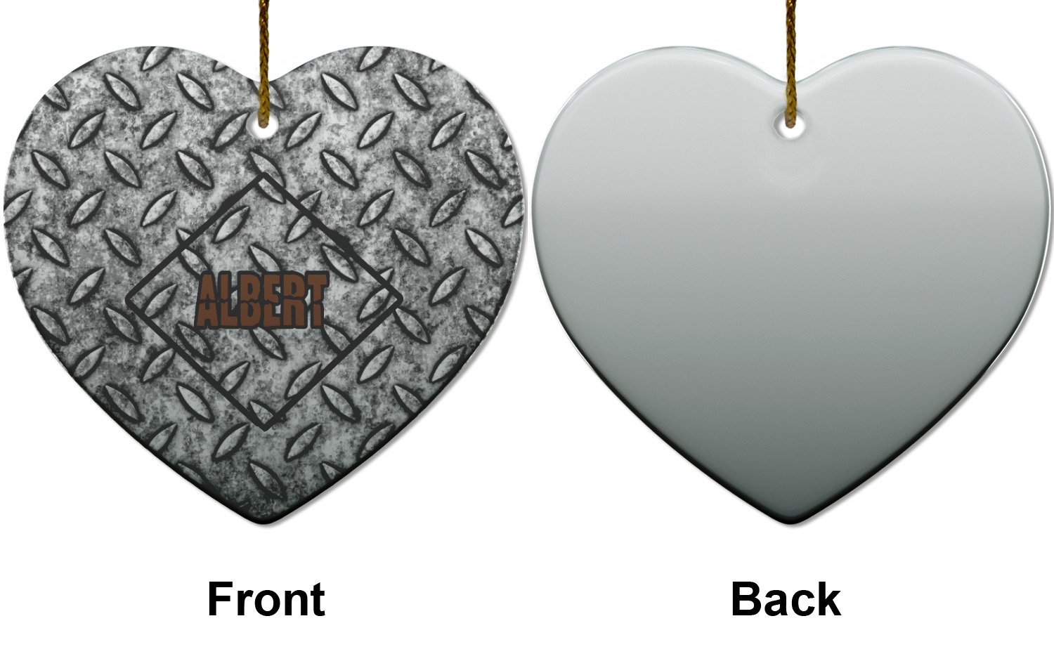 The design idea features a grungy diamond plate as the background. A diamond frame is the focal point of this design idea with your personalization in a grungy font. Nothing could get more manly than this.
