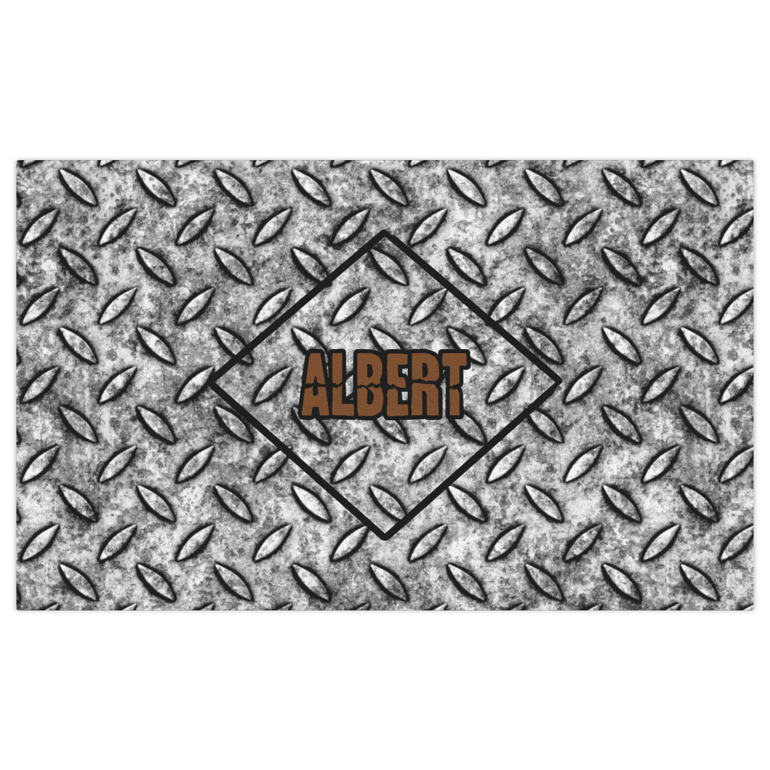 The design idea features a grungy diamond plate as the background. A diamond frame is the focal point of this design idea with your personalization in a grungy font. Nothing could get more manly than this.