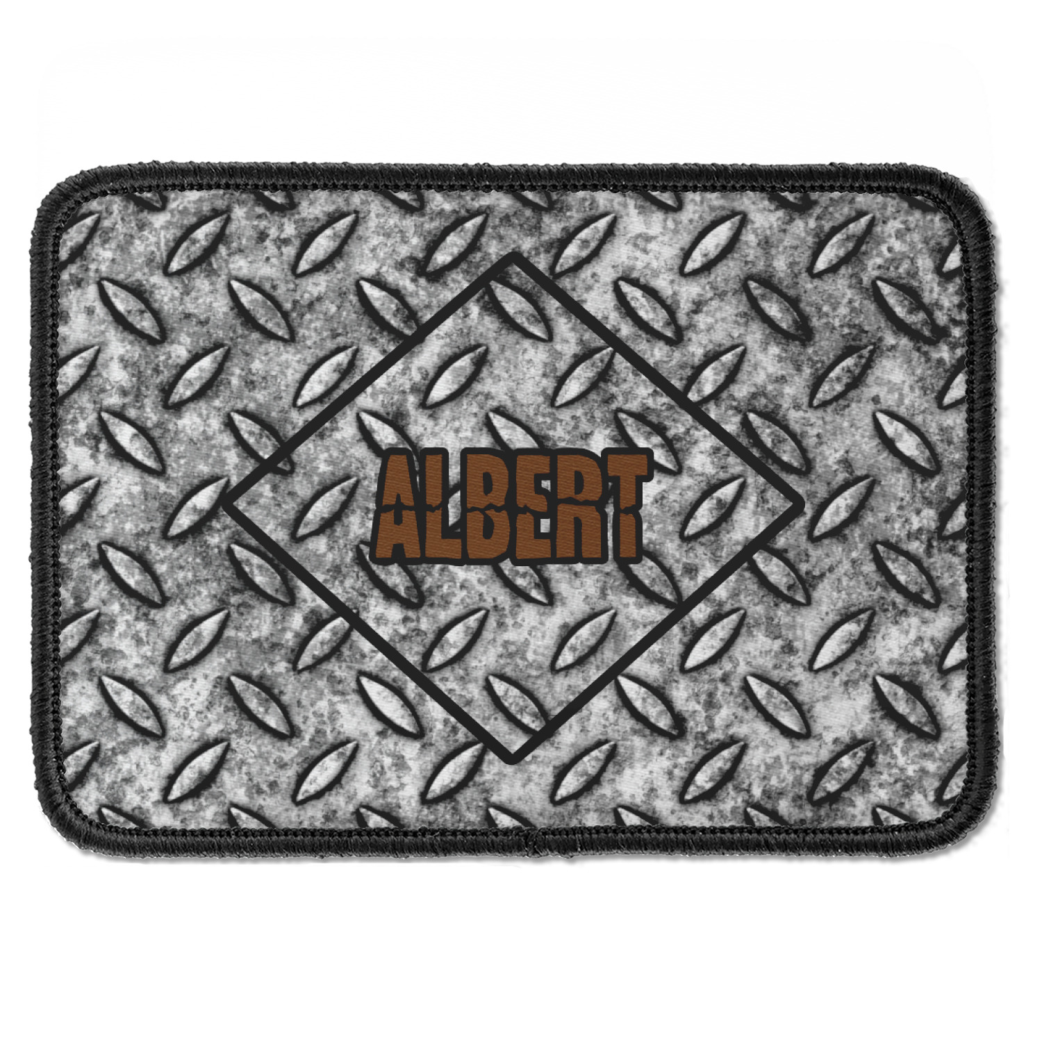 The design idea features a grungy diamond plate as the background. A diamond frame is the focal point of this design idea with your personalization in a grungy font. Nothing could get more manly than this.