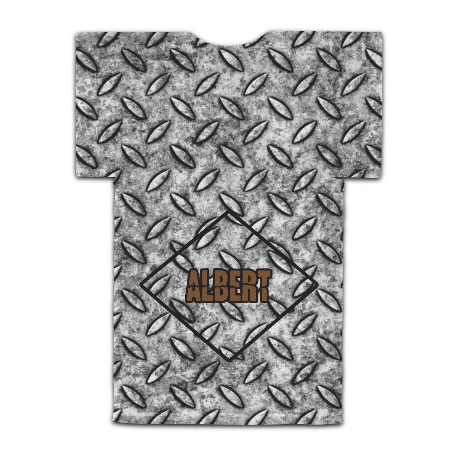 The design idea features a grungy diamond plate as the background. A diamond frame is the focal point of this design idea with your personalization in a grungy font. Nothing could get more manly than this.