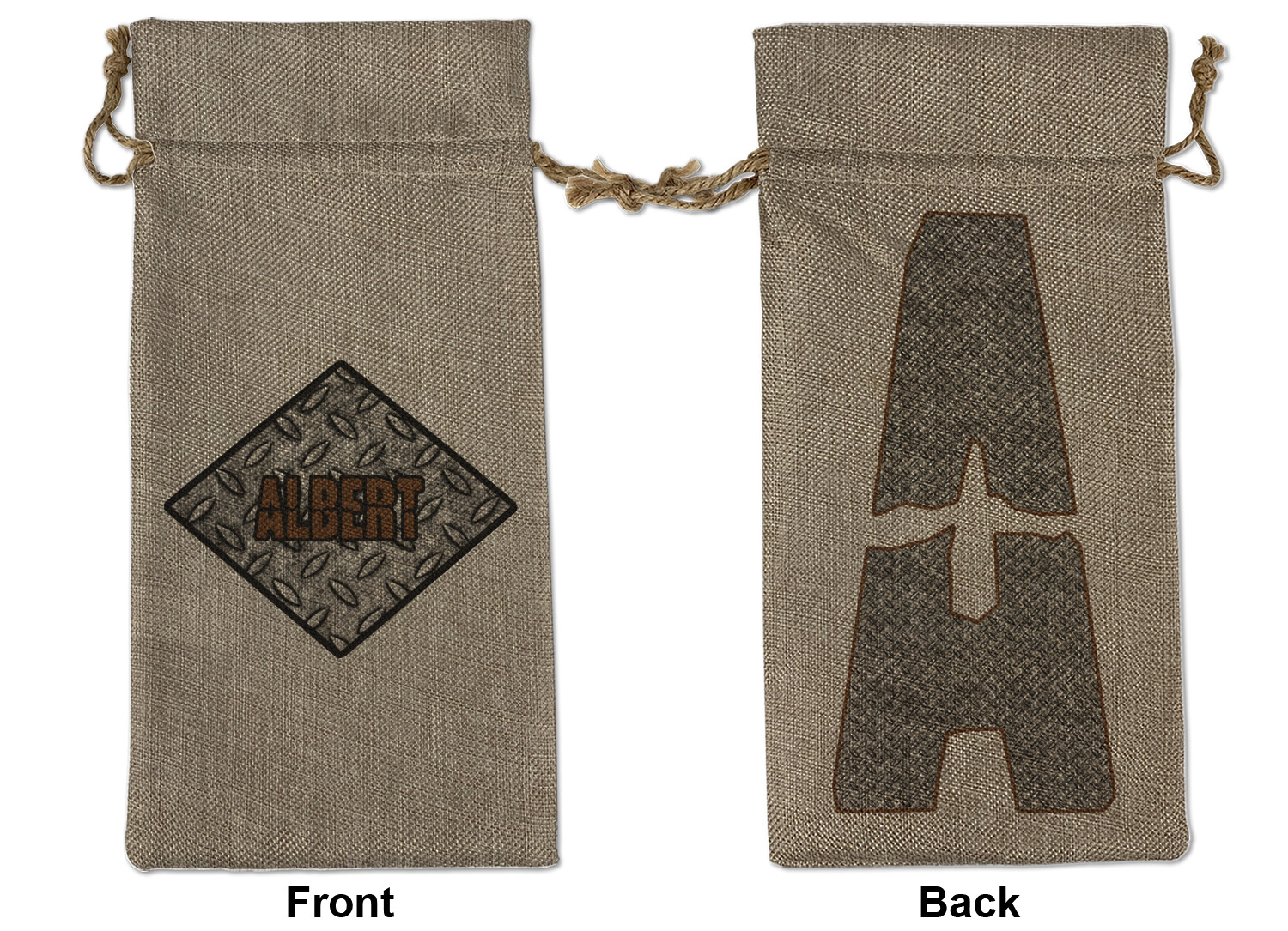 We sell our Burlap Gift Bags in 3 variant sized bags. Made with burlap polyester, each personalized bag can be secured with a twine drawstring pull. Your custom design is available to print on one side or both sides - completely up to you! The sizes of the bags measure approximately 4.5" x 6.5" for the smallest size, 6.5" x 8.0" for the medium size, and 6.5" x 13.5" for the large-sized bag.