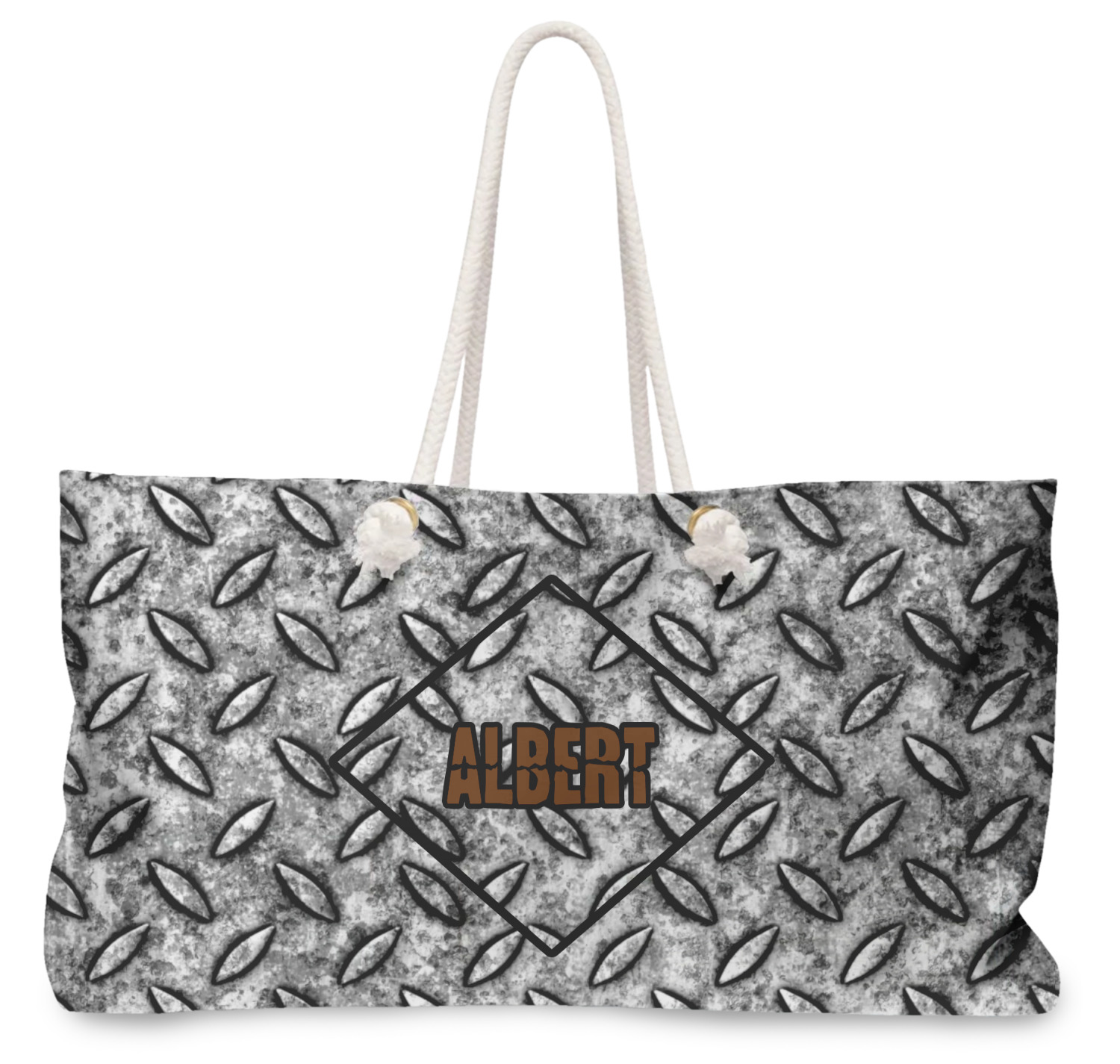 The design idea features a grungy diamond plate as the background. A diamond frame is the focal point of this design idea with your personalization in a grungy font. Nothing could get more manly than this.