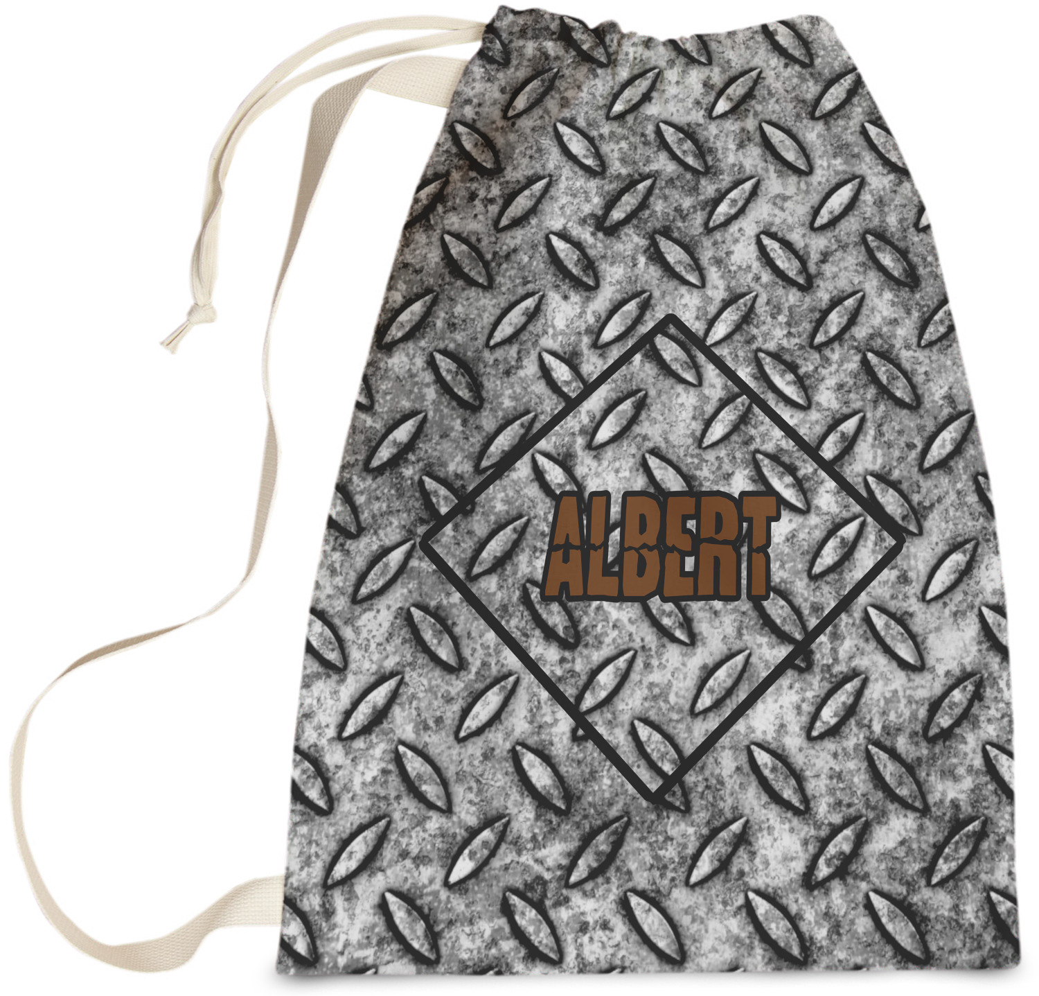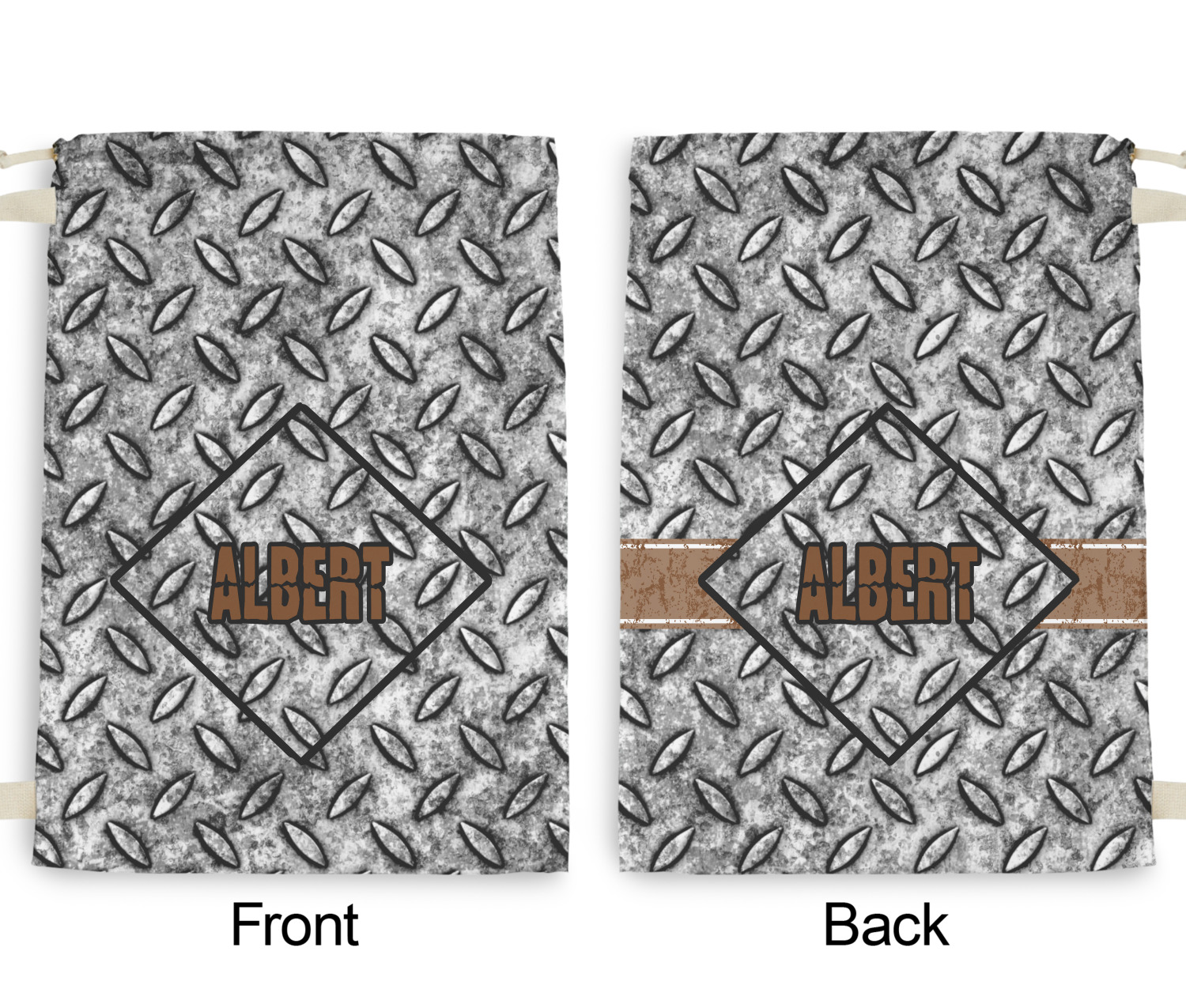 The design idea features a grungy diamond plate as the background. A diamond frame is the focal point of this design idea with your personalization in a grungy font. Nothing could get more manly than this.