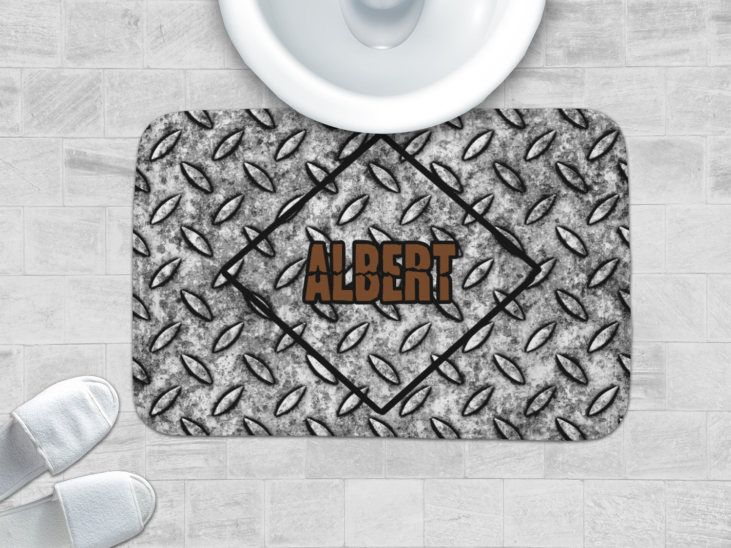 The design idea features a grungy diamond plate as the background. A diamond frame is the focal point of this design idea with your personalization in a grungy font. Nothing could get more manly than this.