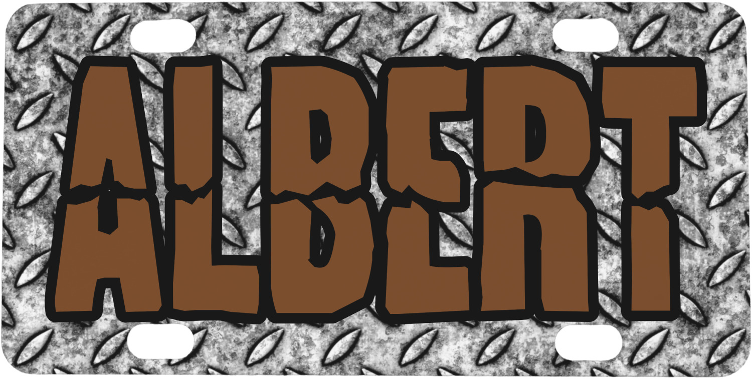 The design idea features a grungy diamond plate as the background. A diamond frame is the focal point of this design idea with your personalization in a grungy font. Nothing could get more manly than this.