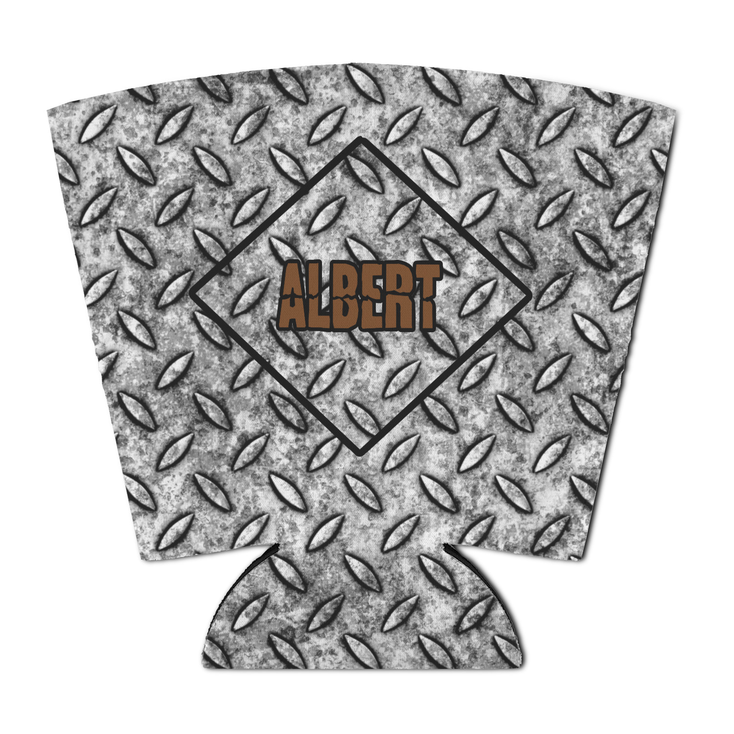 The design idea features a grungy diamond plate as the background. A diamond frame is the focal point of this design idea with your personalization in a grungy font. Nothing could get more manly than this.