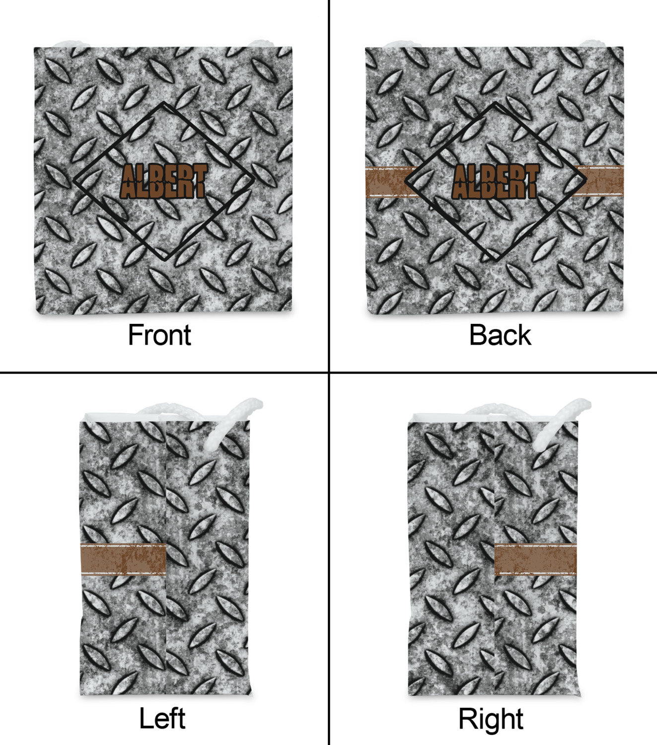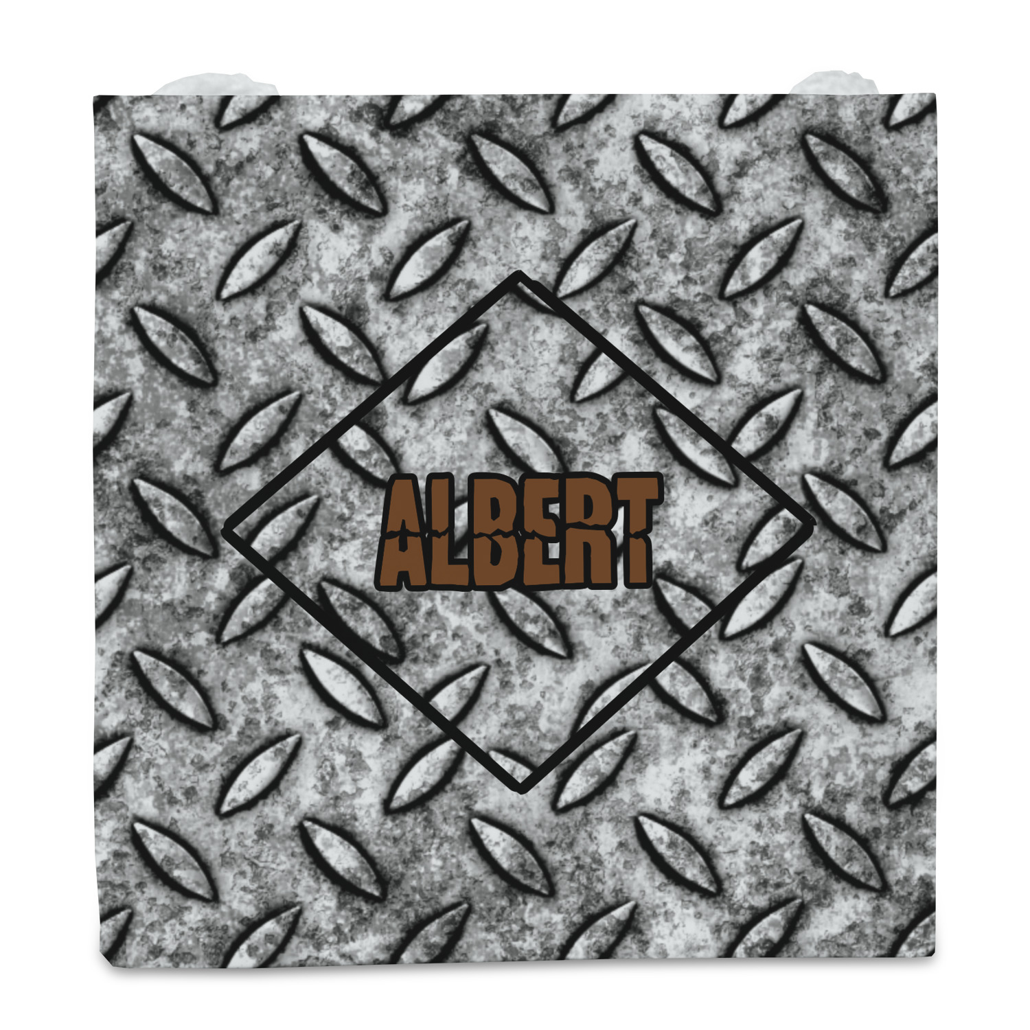 The design idea features a grungy diamond plate as the background. A diamond frame is the focal point of this design idea with your personalization in a grungy font. Nothing could get more manly than this.