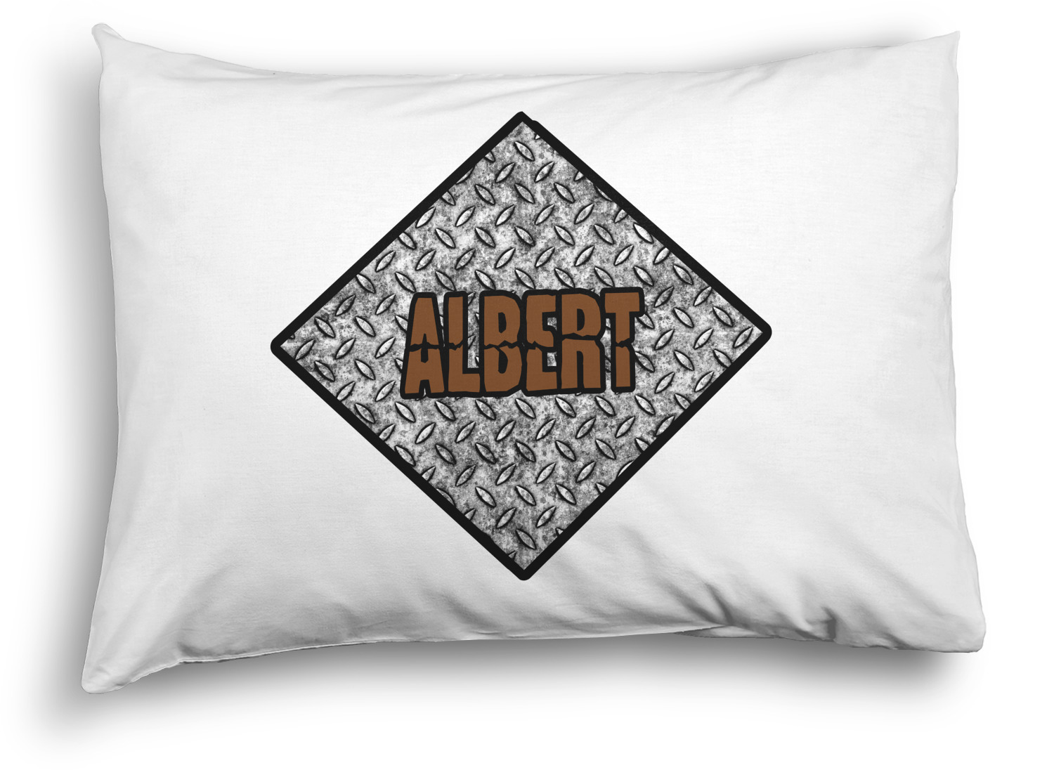 The design idea features a grungy diamond plate as the background. A diamond frame is the focal point of this design idea with your personalization in a grungy font. Nothing could get more manly than this.