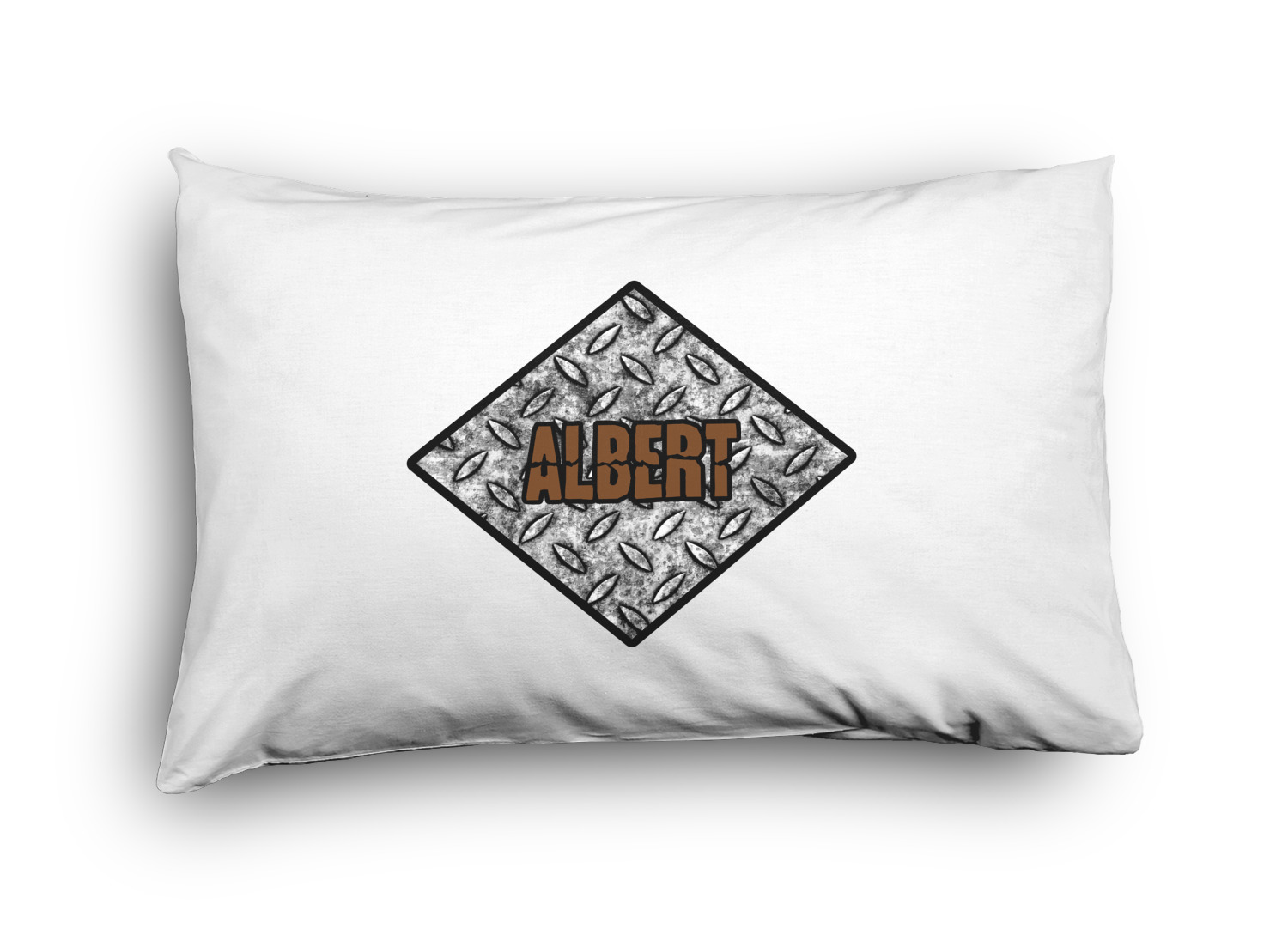 The design idea features a grungy diamond plate as the background. A diamond frame is the focal point of this design idea with your personalization in a grungy font. Nothing could get more manly than this.