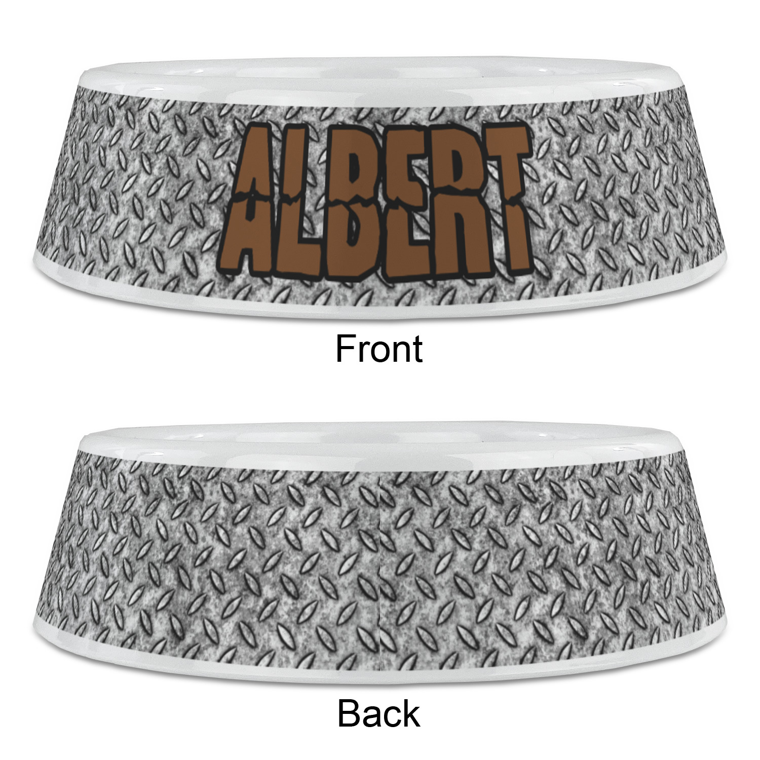 The design idea features a grungy diamond plate as the background. A diamond frame is the focal point of this design idea with your personalization in a grungy font. Nothing could get more manly than this.