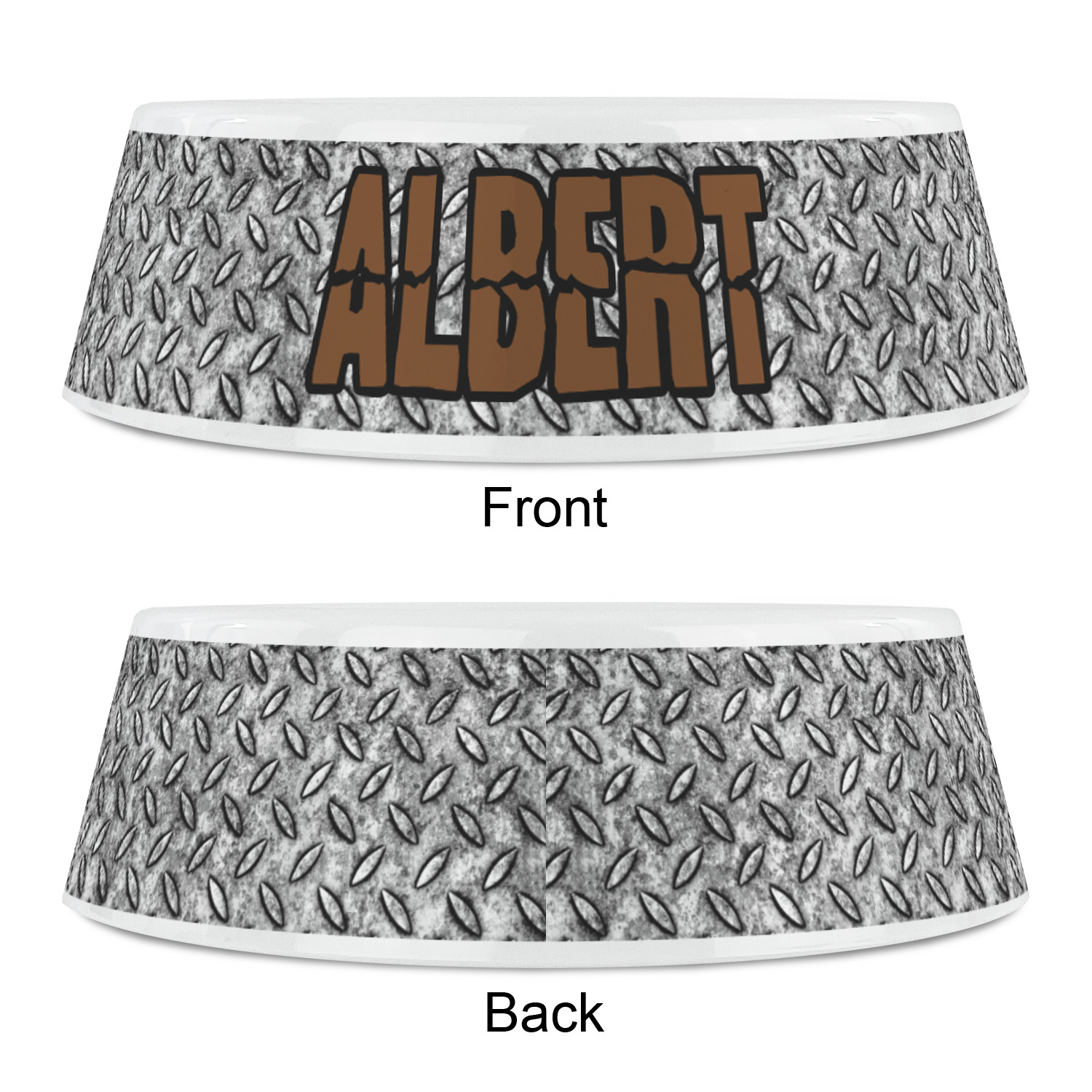 The design idea features a grungy diamond plate as the background. A diamond frame is the focal point of this design idea with your personalization in a grungy font. Nothing could get more manly than this.