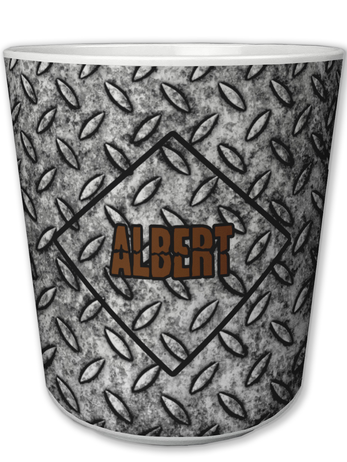 The design idea features a grungy diamond plate as the background. A diamond frame is the focal point of this design idea with your personalization in a grungy font. Nothing could get more manly than this.