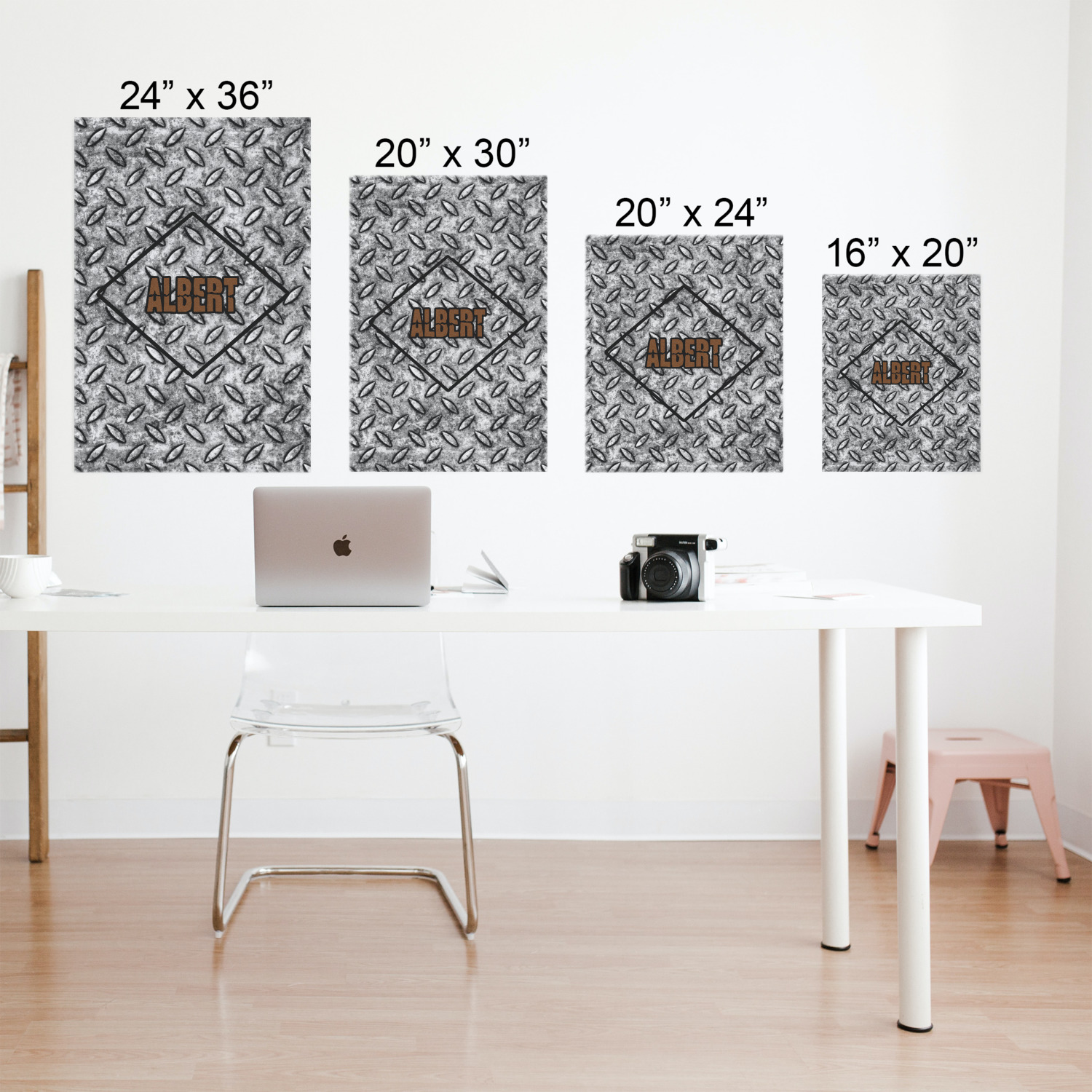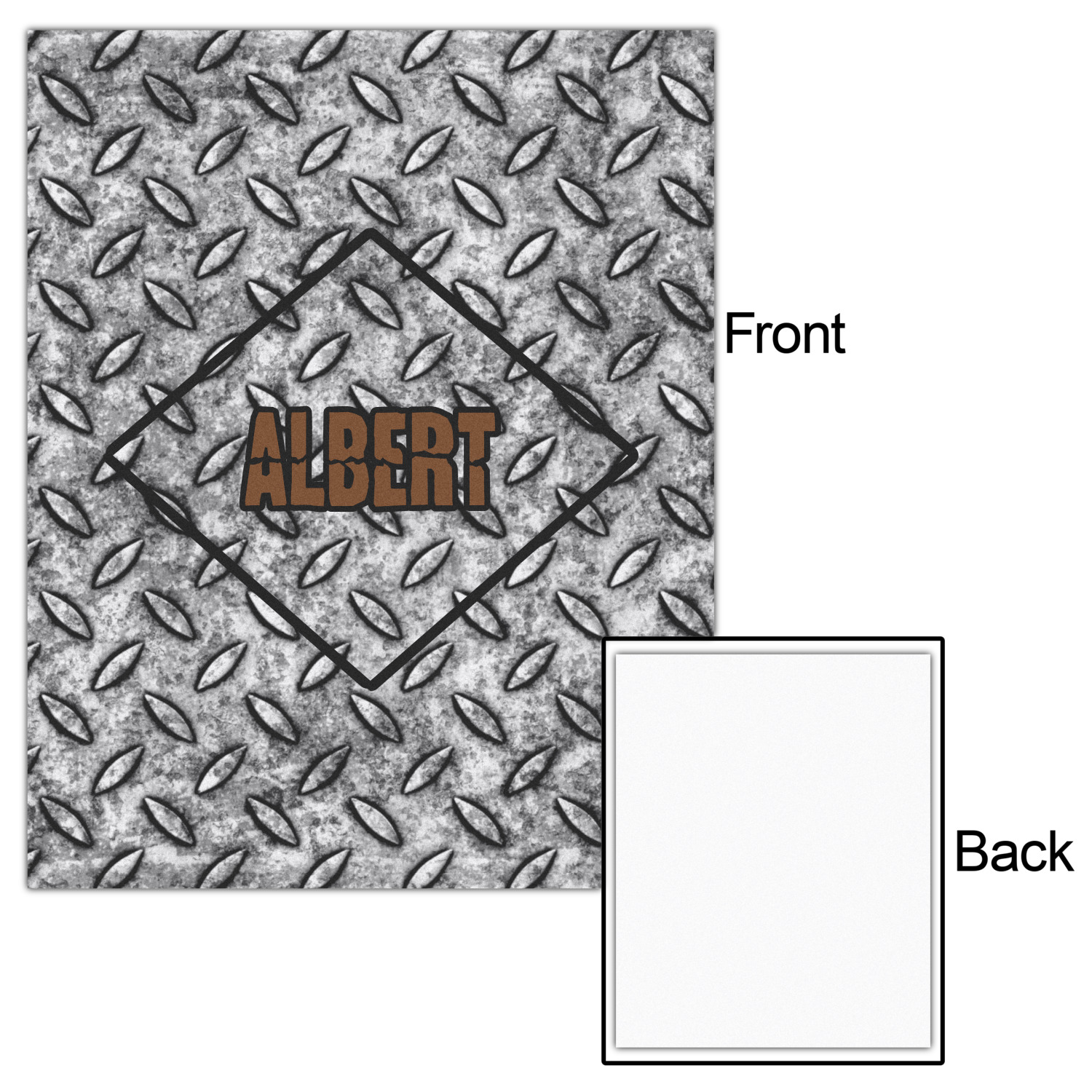 The design idea features a grungy diamond plate as the background. A diamond frame is the focal point of this design idea with your personalization in a grungy font. Nothing could get more manly than this.