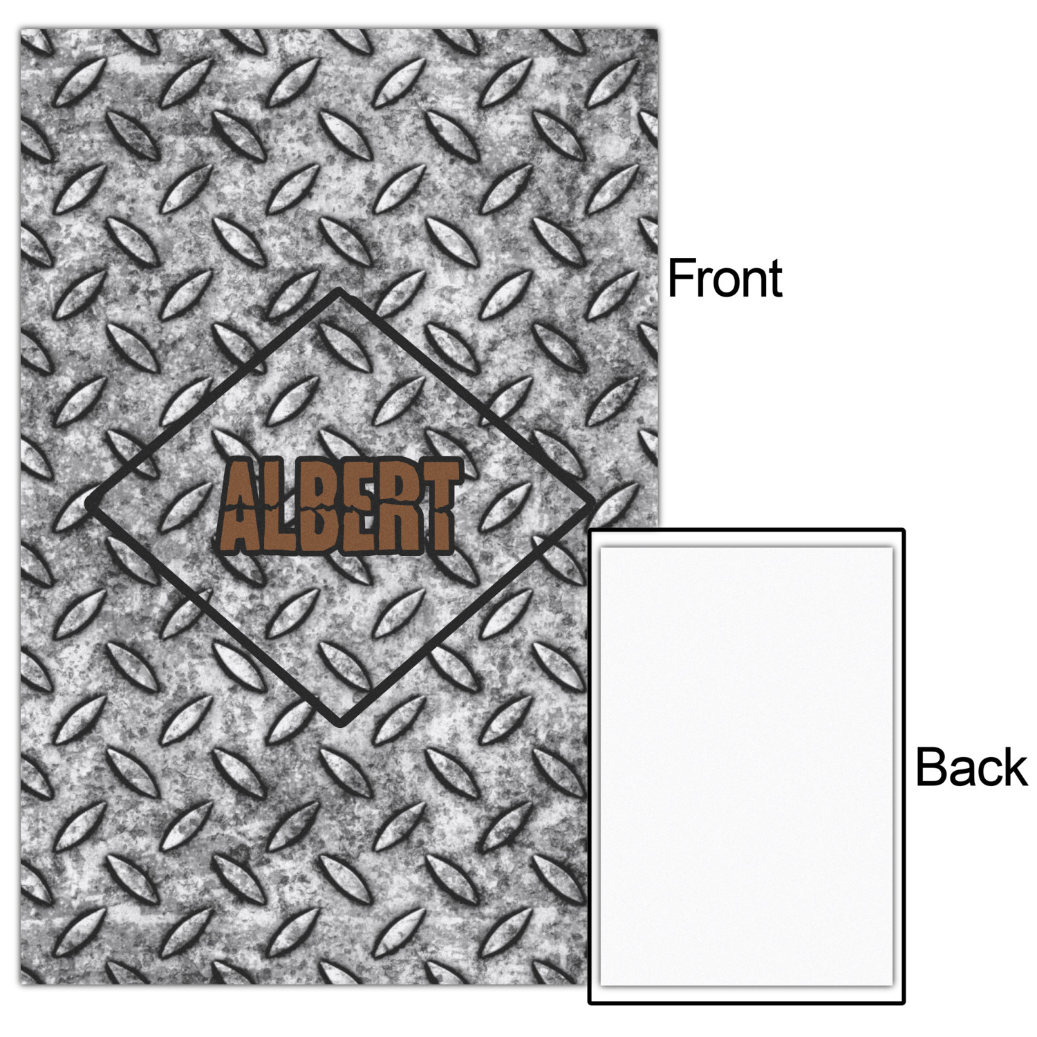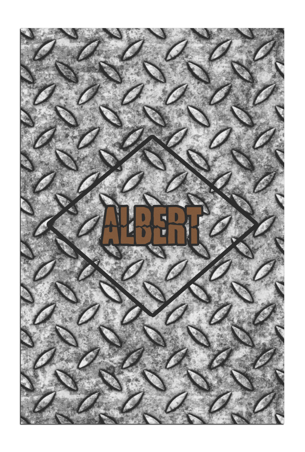 The design idea features a grungy diamond plate as the background. A diamond frame is the focal point of this design idea with your personalization in a grungy font. Nothing could get more manly than this.
