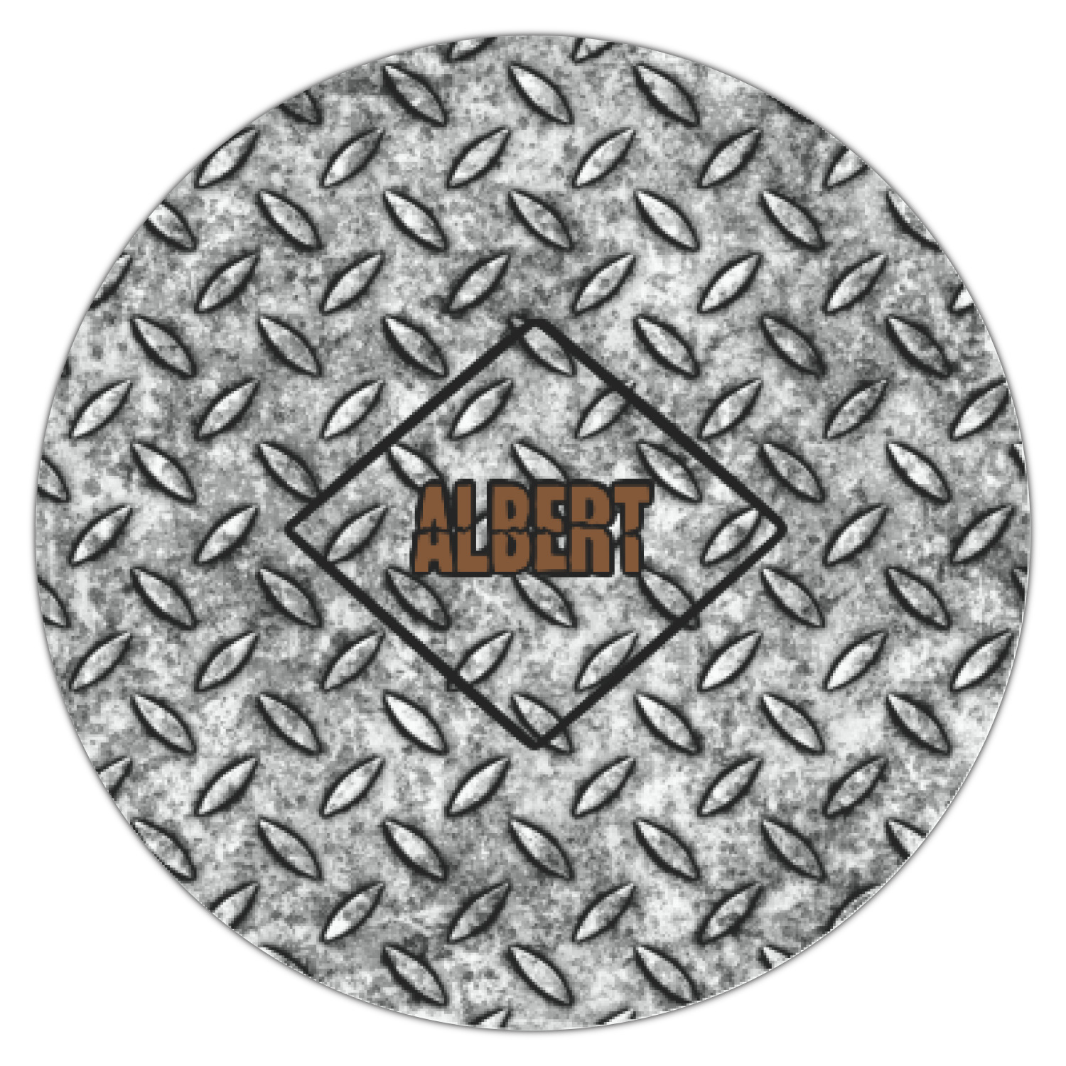 The design idea features a grungy diamond plate as the background. A diamond frame is the focal point of this design idea with your personalization in a grungy font. Nothing could get more manly than this.