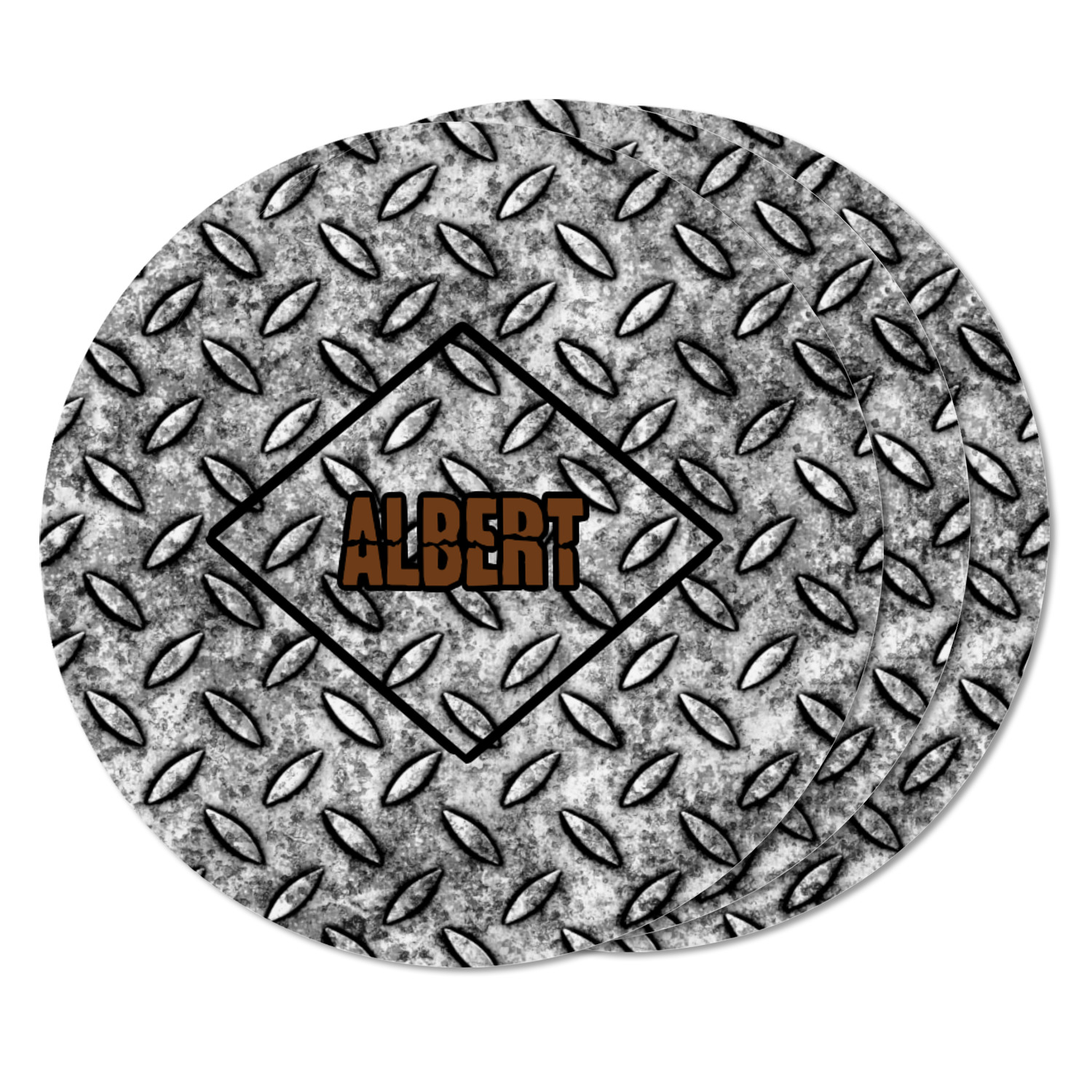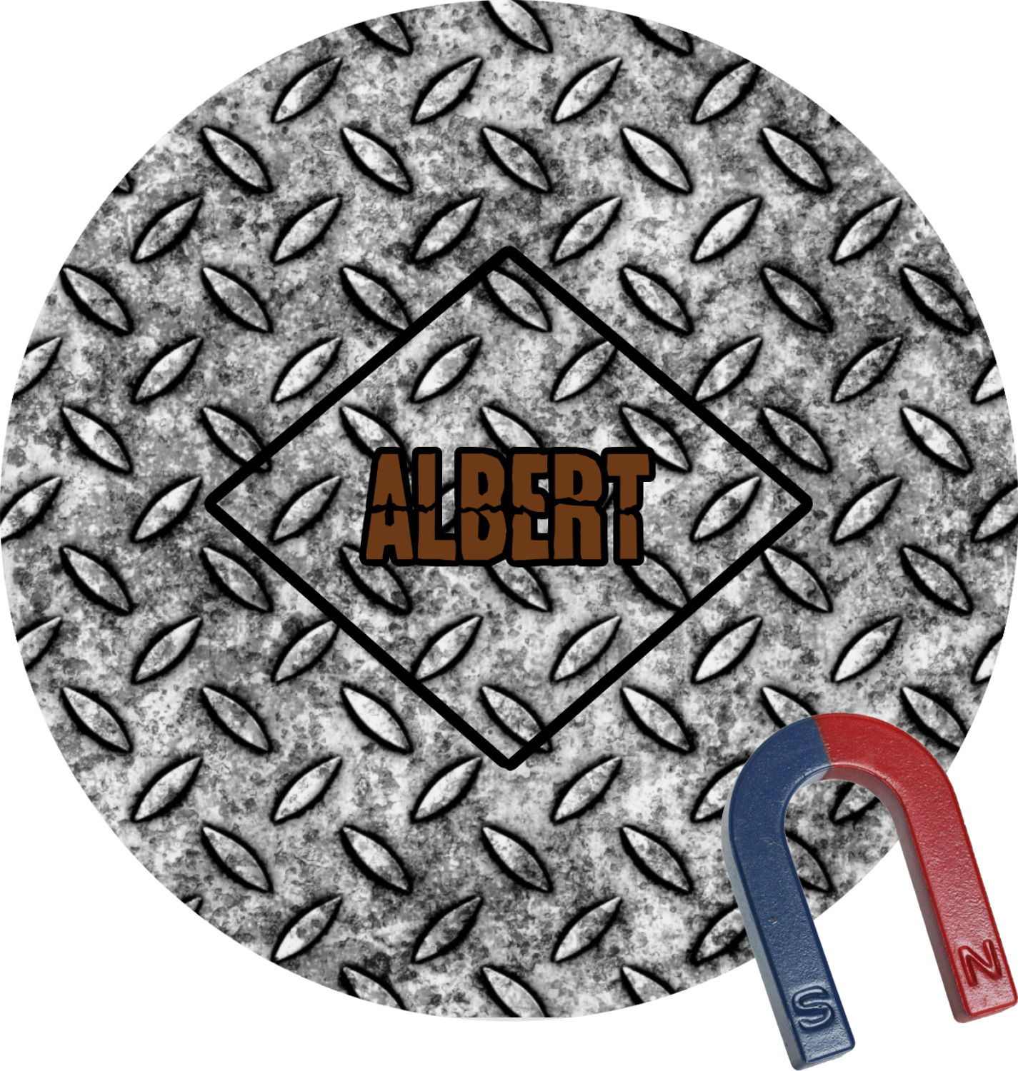 The design idea features a grungy diamond plate as the background. A diamond frame is the focal point of this design idea with your personalization in a grungy font. Nothing could get more manly than this.