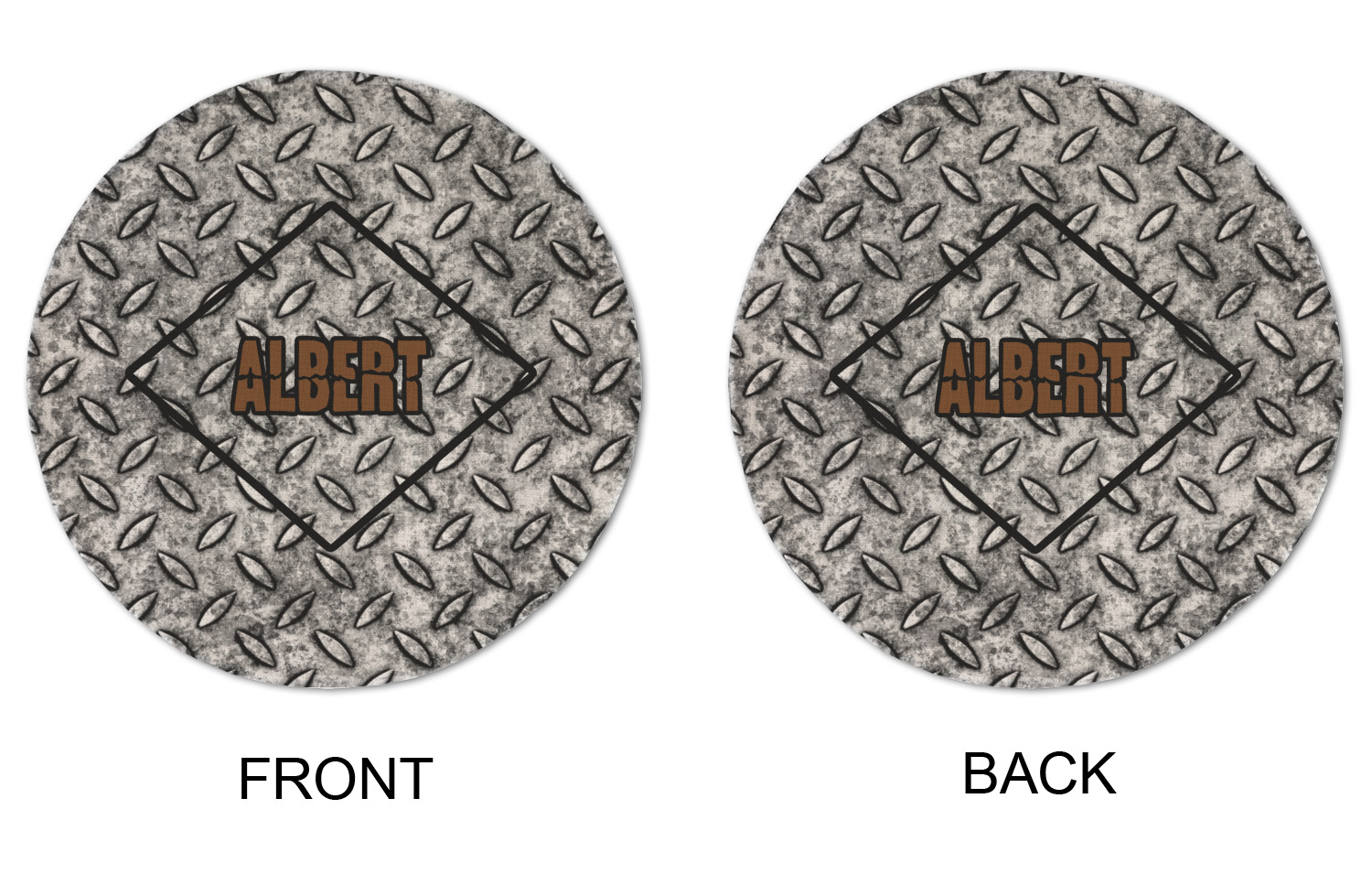 The design idea features a grungy diamond plate as the background. A diamond frame is the focal point of this design idea with your personalization in a grungy font. Nothing could get more manly than this.