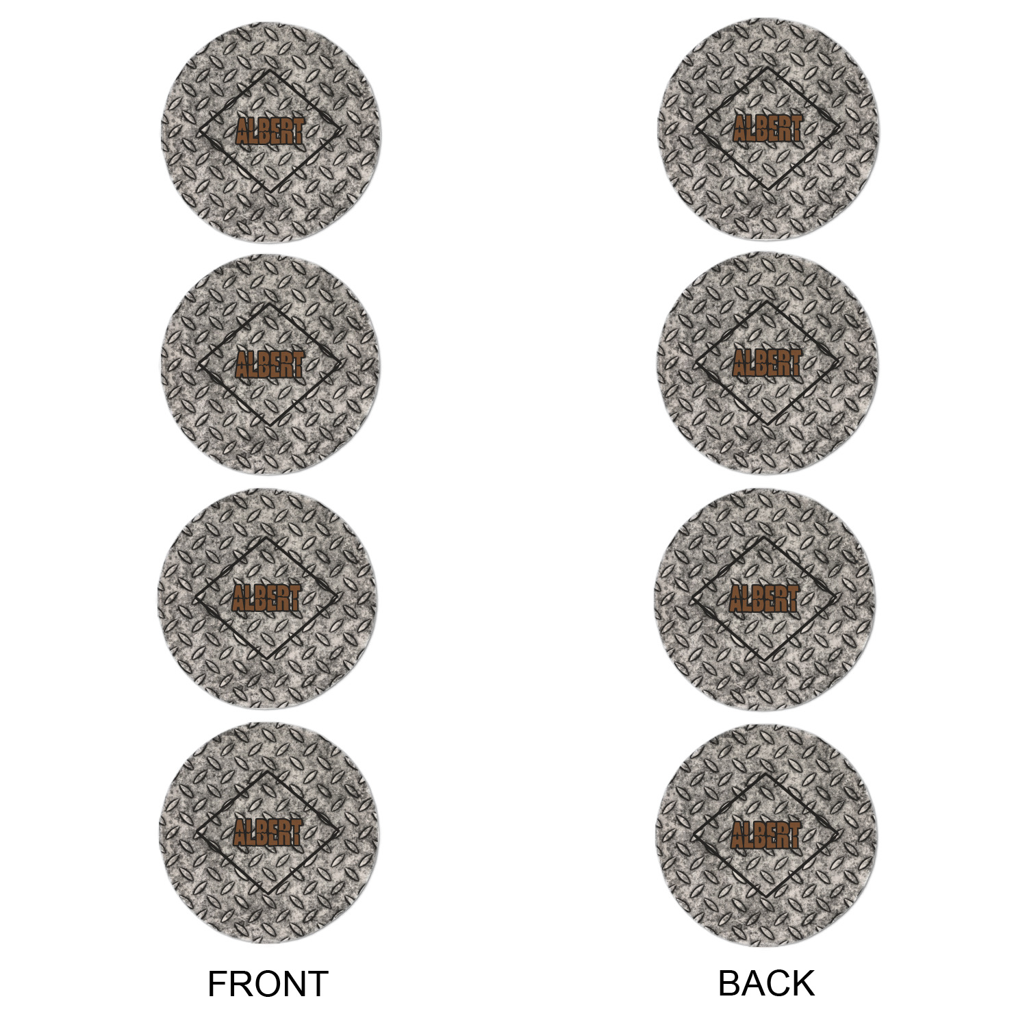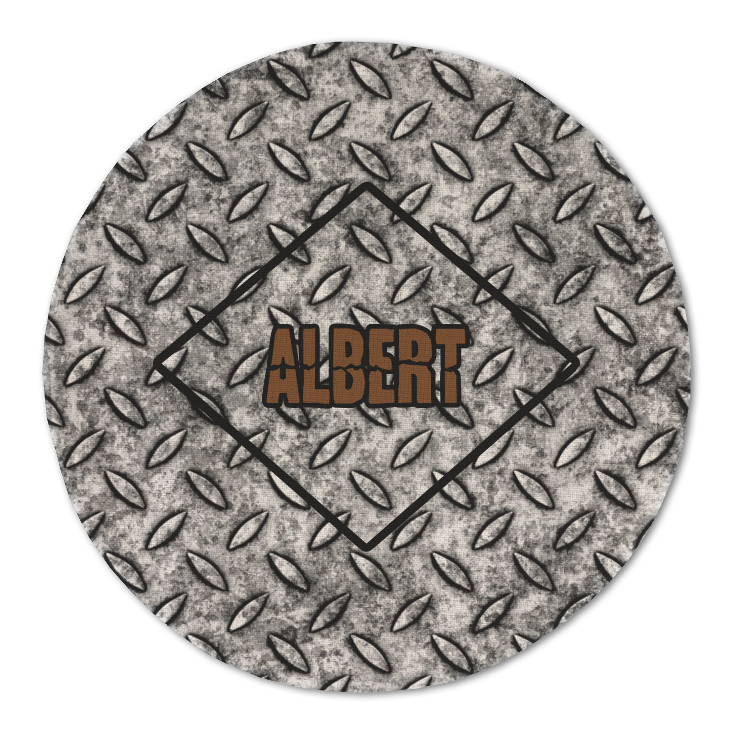 The design idea features a grungy diamond plate as the background. A diamond frame is the focal point of this design idea with your personalization in a grungy font. Nothing could get more manly than this.