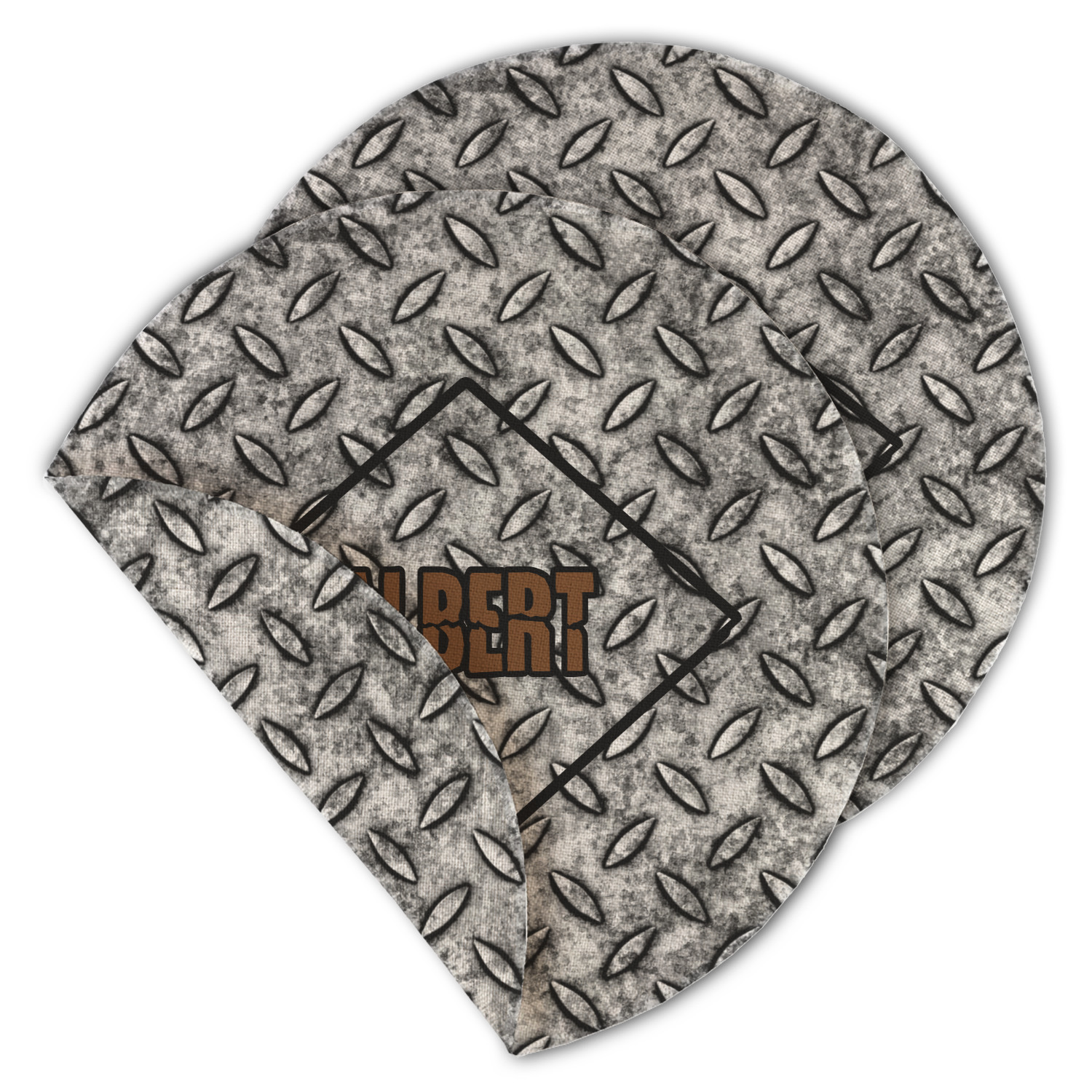 The design idea features a grungy diamond plate as the background. A diamond frame is the focal point of this design idea with your personalization in a grungy font. Nothing could get more manly than this.