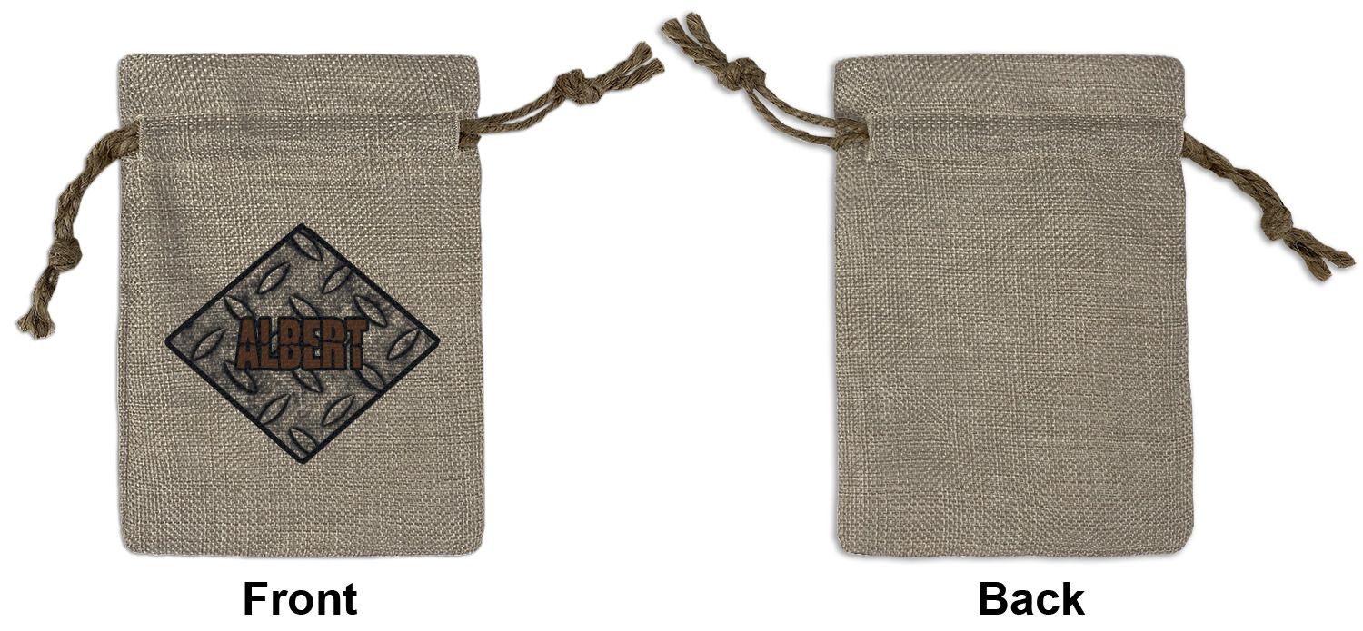 We sell our Burlap Gift Bags in 3 variant sized bags. Made with burlap polyester, each personalized bag can be secured with a twine drawstring pull. Your custom design is available to print on one side or both sides - completely up to you! The sizes of the bags measure approximately 4.5" x 6.5" for the smallest size, 6.5" x 8.0" for the medium size, and 6.5" x 13.5" for the large-sized bag.