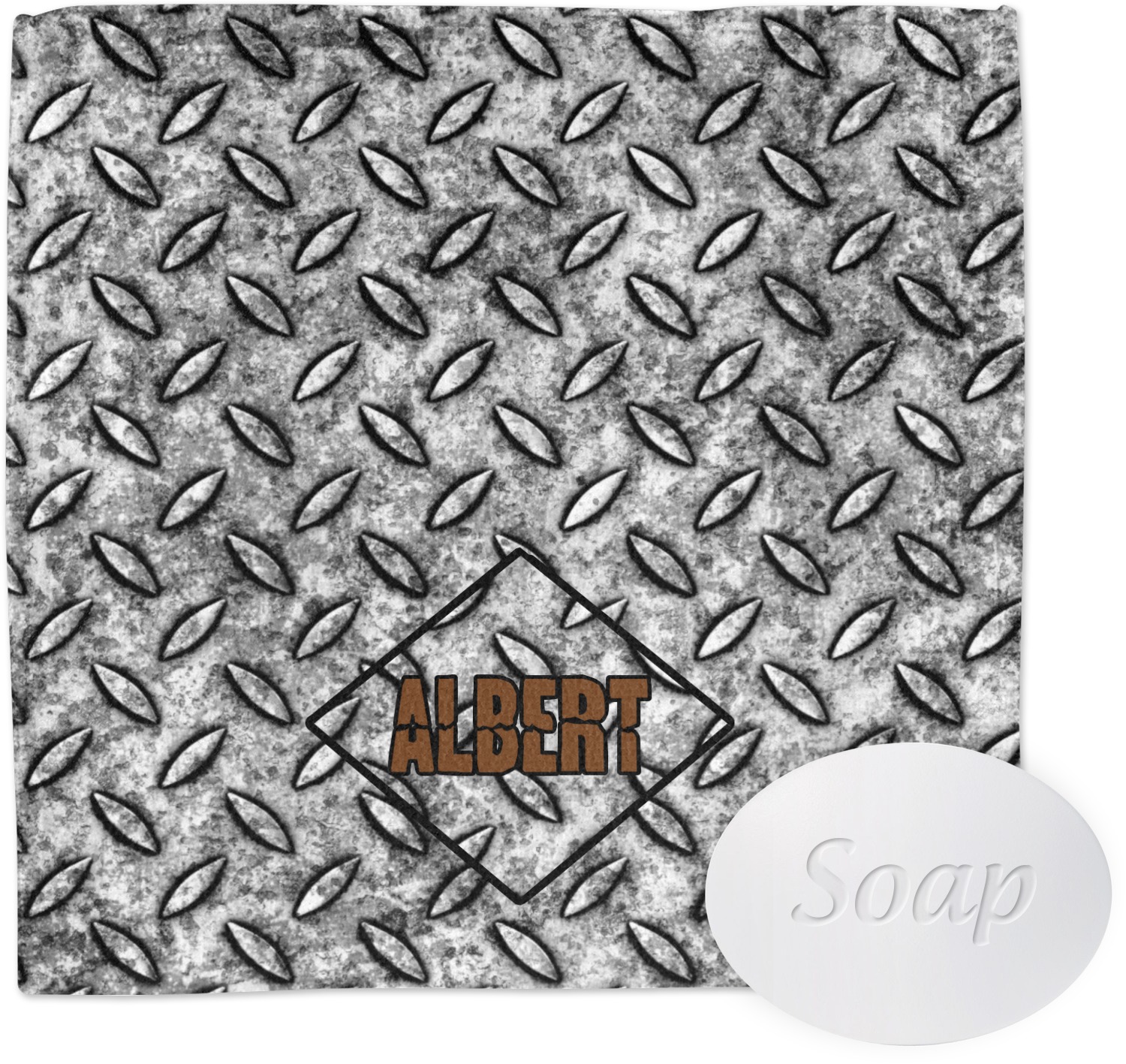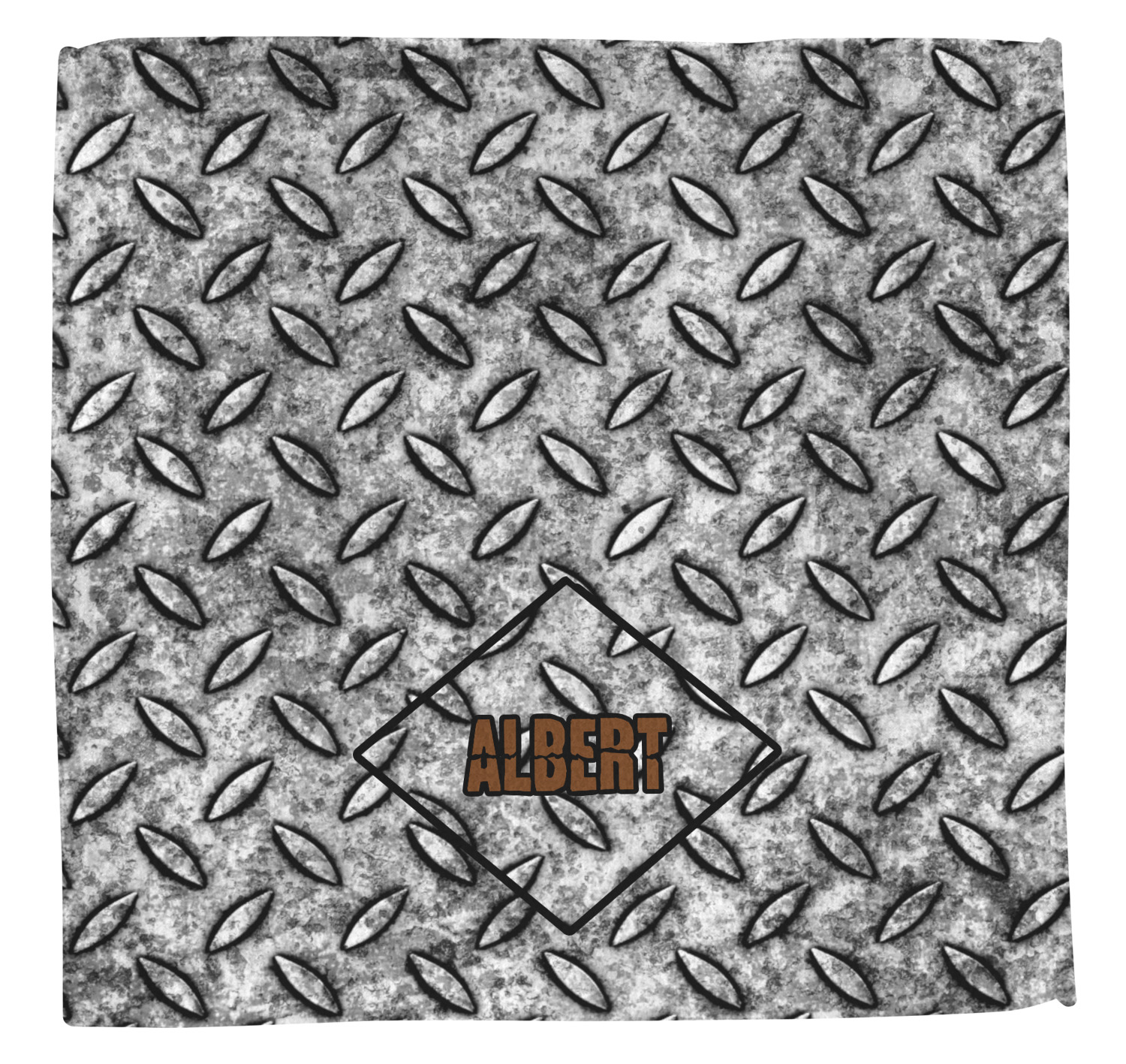 The design idea features a grungy diamond plate as the background. A diamond frame is the focal point of this design idea with your personalization in a grungy font. Nothing could get more manly than this.
