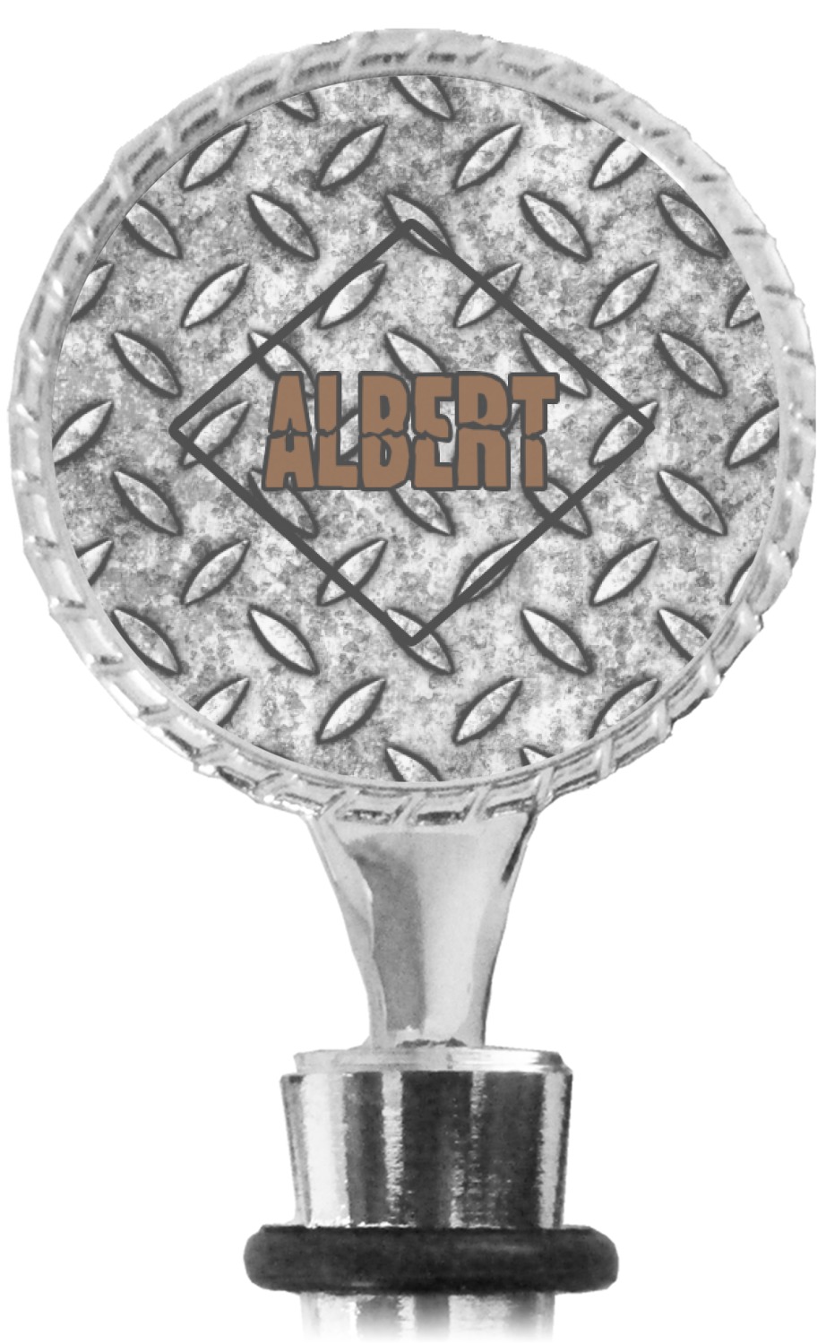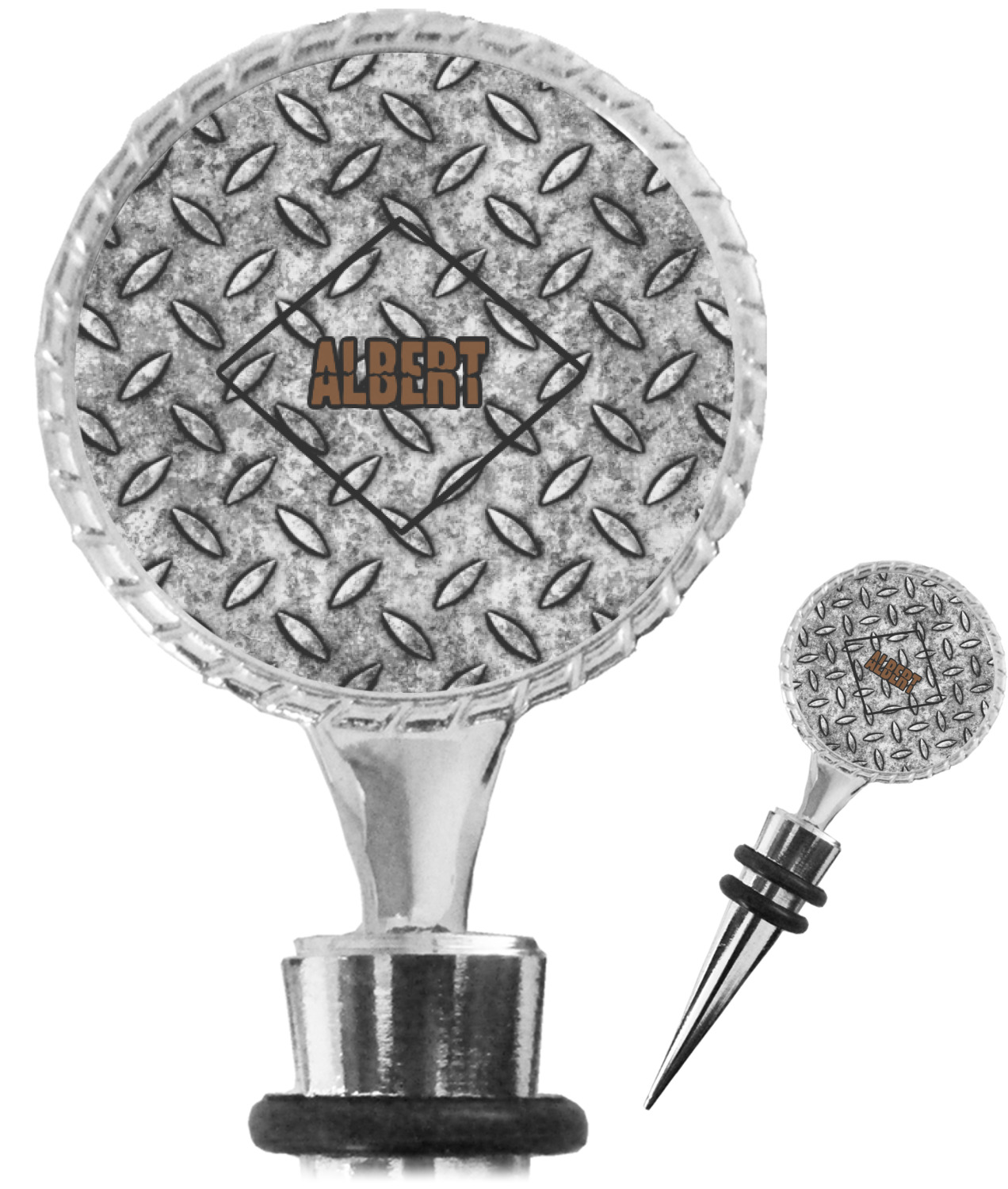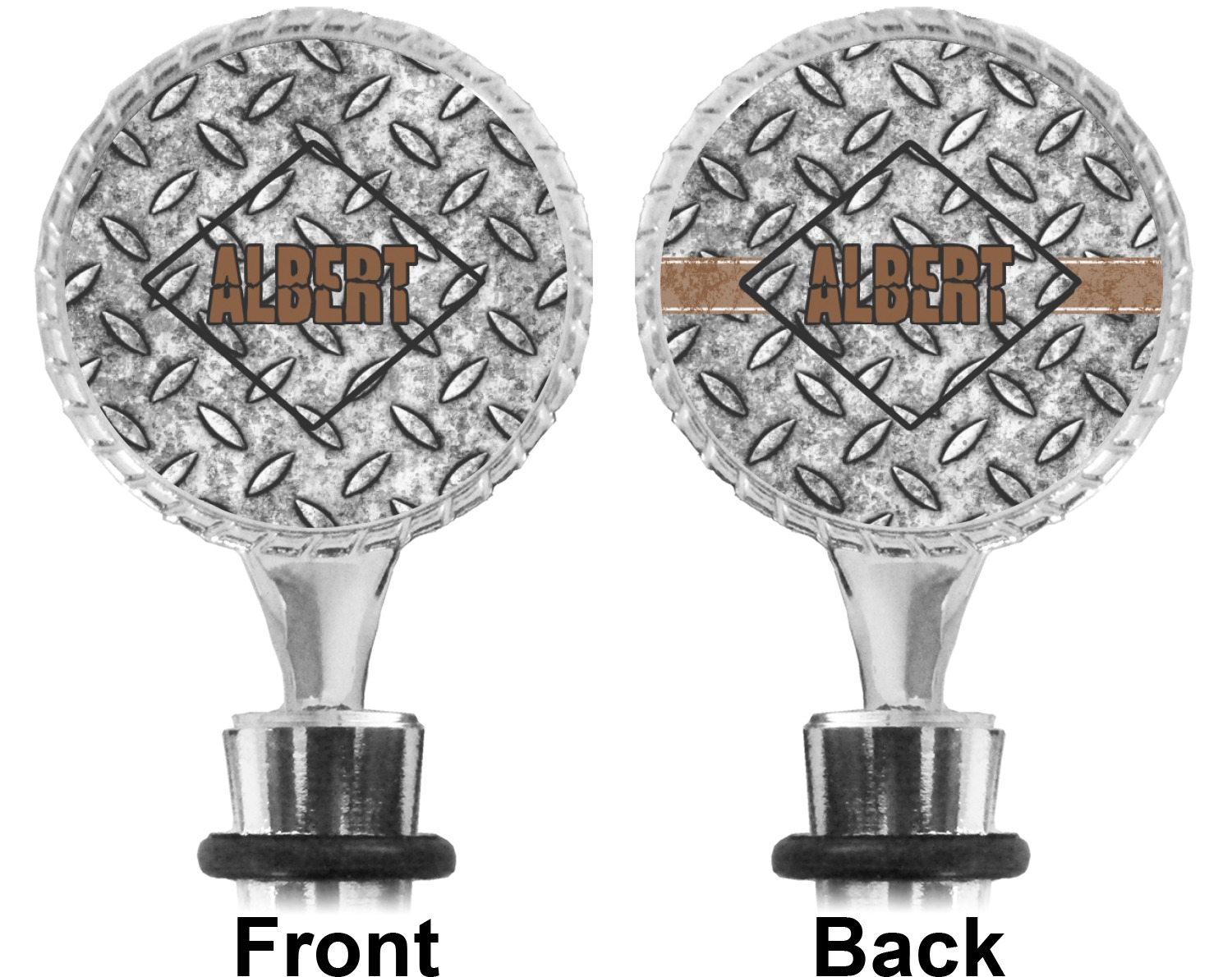 The top part of your bottle stopper is comprised of a zinc ring that displays your customization(s) in its middle, on both sides. The ring is heavy duty, with a bright chrome finish. The body of the wine stoppers have two silicone rings to provide an airtight seal. These wine bottle stoppers measure at 1.625" L x 0.8125" W x 4.625" H; your custom wine stopper is meant to fit into most standard-sized wine bottles.