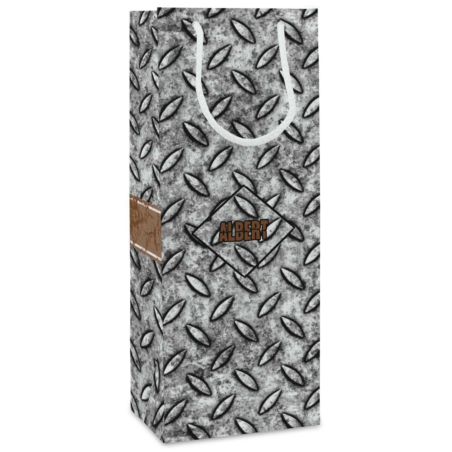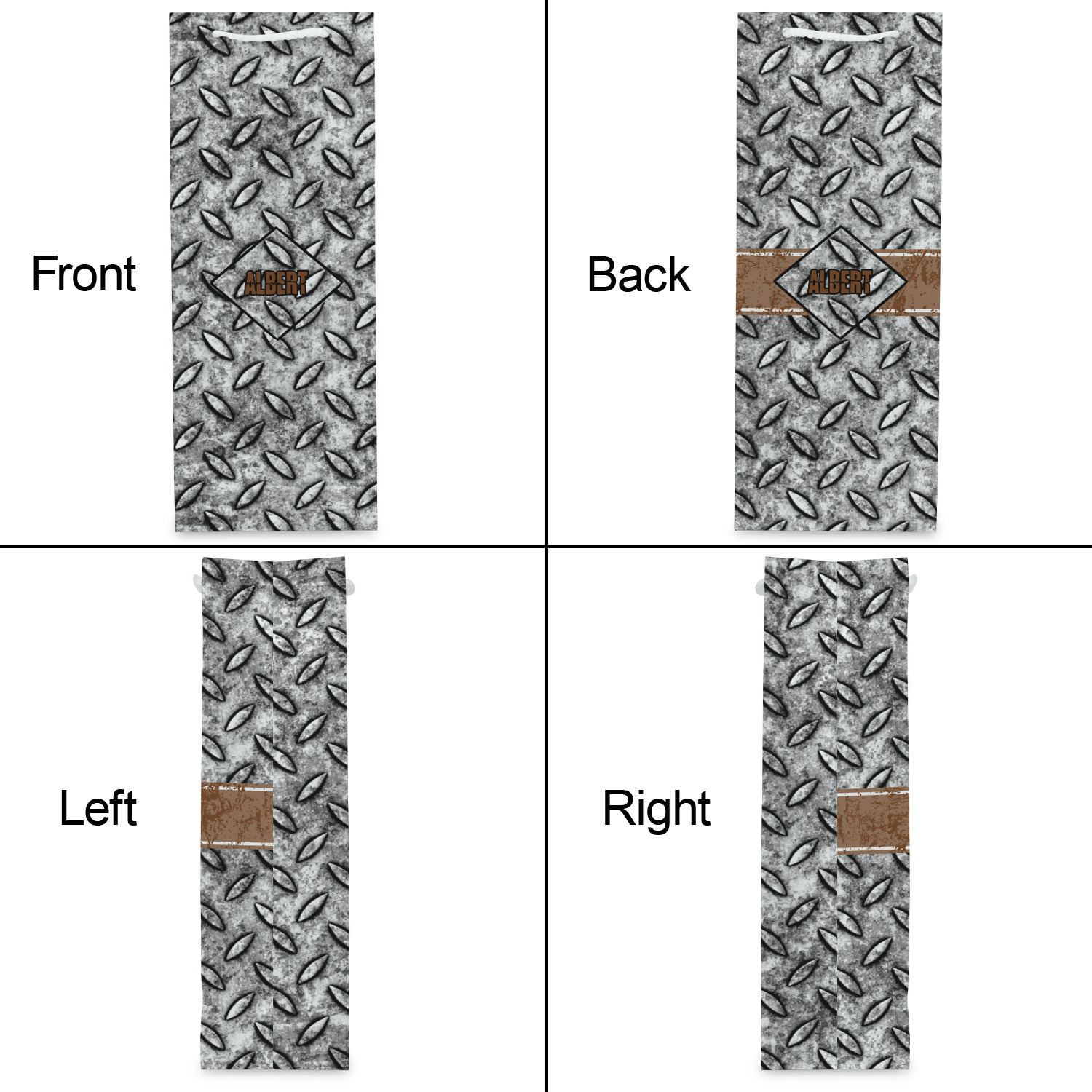 Our wine bags are printed on premium paper. The bags are then cut, scored and folded. The handles and cardstock base it attached. These custom wine bags are printed and made in the USA.