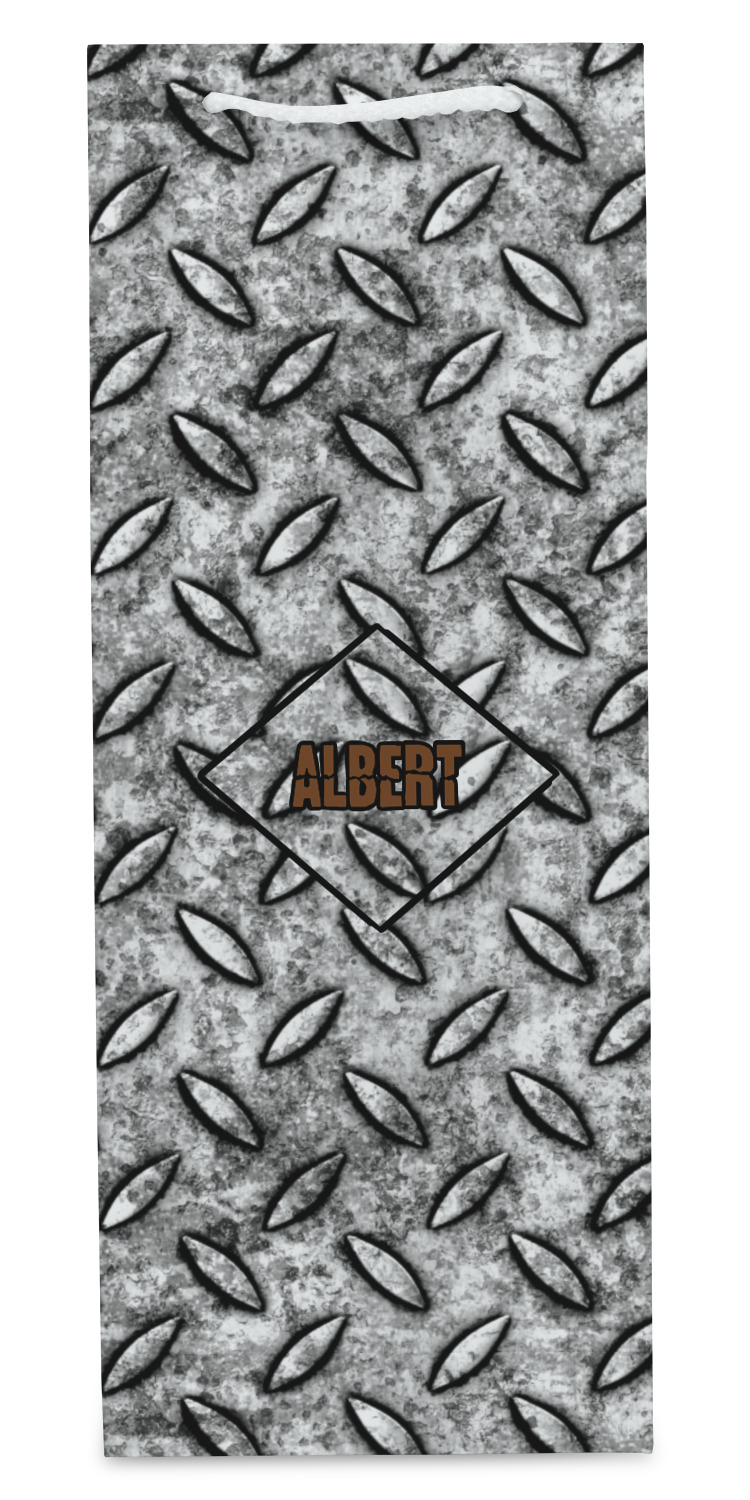 The design idea features a grungy diamond plate as the background. A diamond frame is the focal point of this design idea with your personalization in a grungy font. Nothing could get more manly than this.
