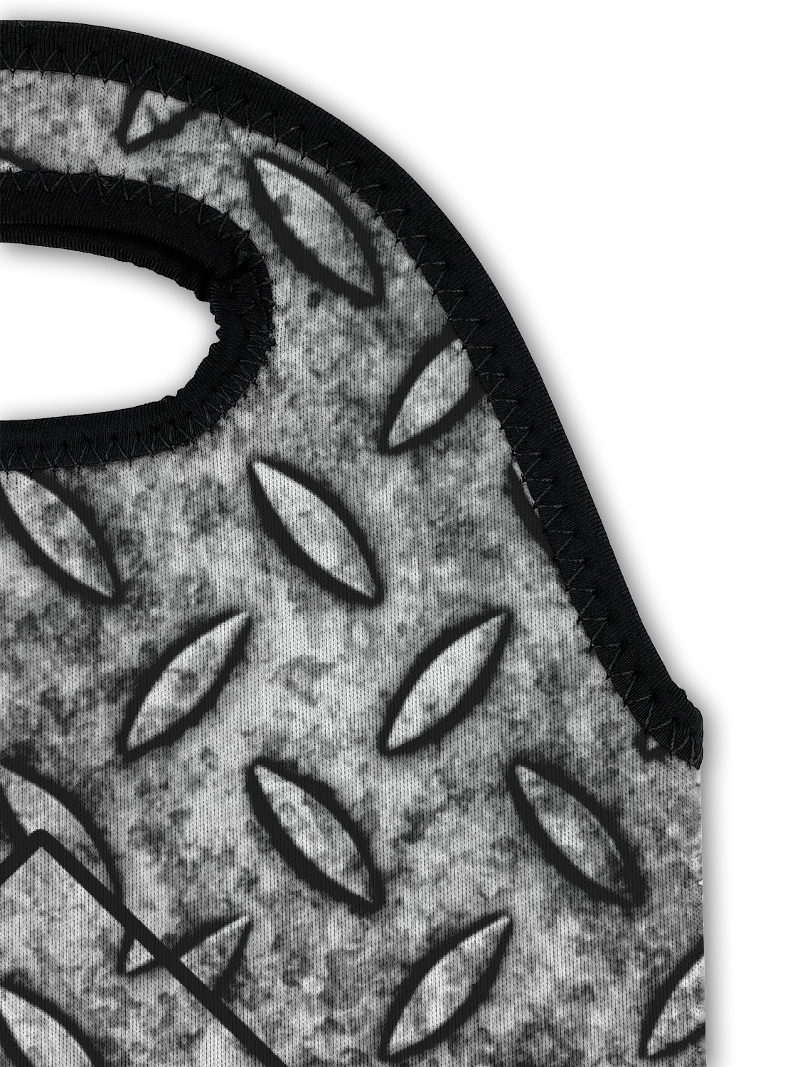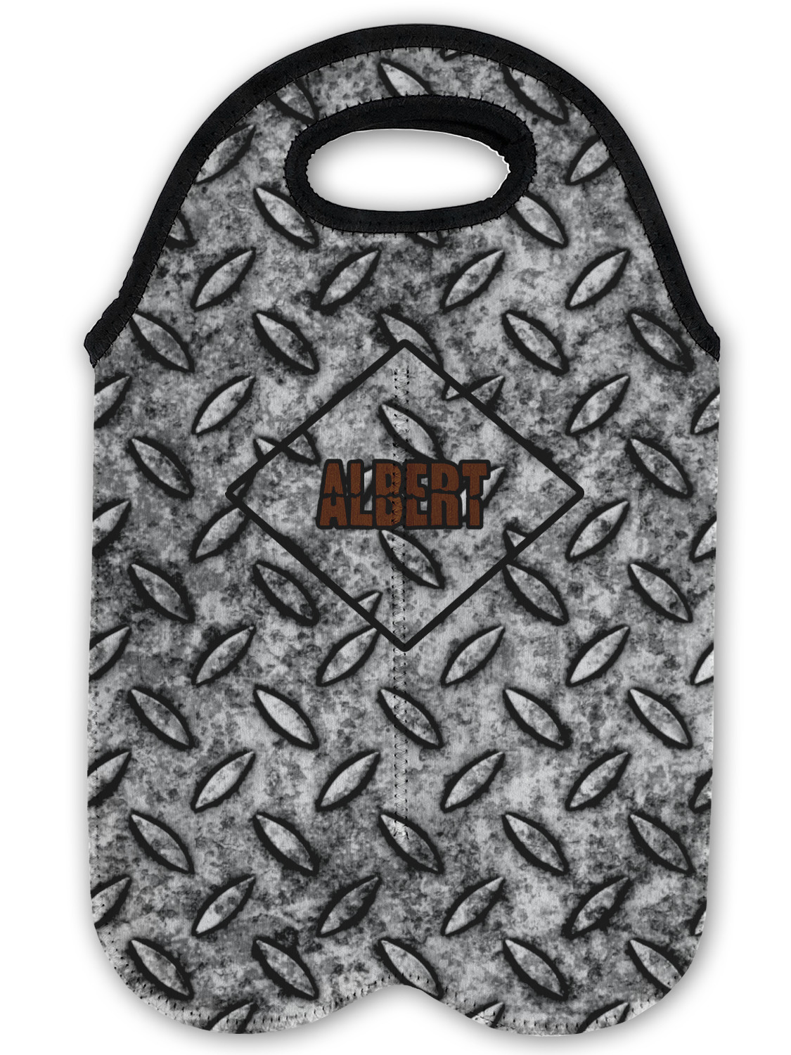 The design idea features a grungy diamond plate as the background. A diamond frame is the focal point of this design idea with your personalization in a grungy font. Nothing could get more manly than this.