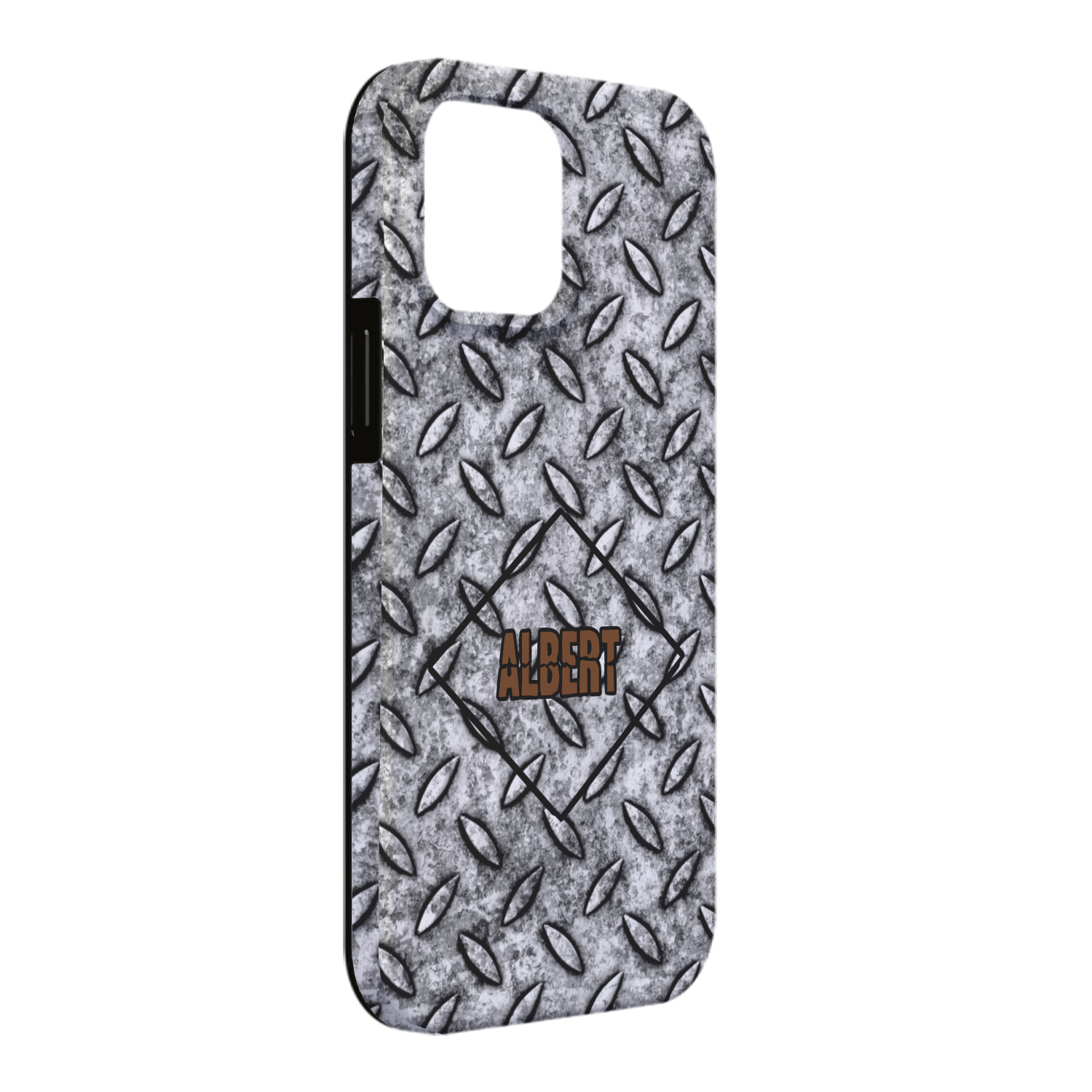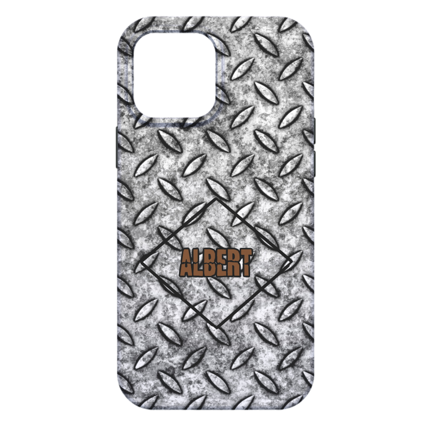 The design idea features a grungy diamond plate as the background. A diamond frame is the focal point of this design idea with your personalization in a grungy font. Nothing could get more manly than this.