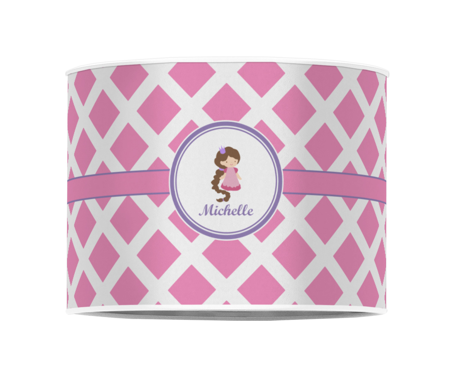 This princess themed print full of little girl pink and purple makes the statement that your little girl is The Princess. This print features every princess's dream full of castles, crowns, her very own prince frog to kiss, and lots of hearts fluttering about. The bottom of the design is a coordinating pink and white diamond pattern.