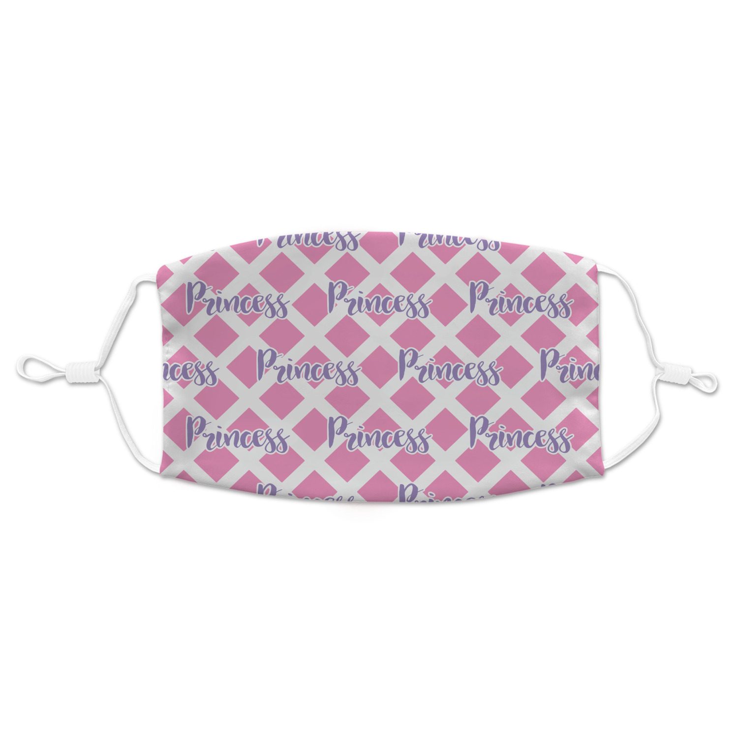 This princess themed print full of little girl pink and purple makes the statement that your little girl is The Princess. This print features every princess's dream full of castles, crowns, her very own prince frog to kiss, and lots of hearts fluttering about. The bottom of the design is a coordinating pink and white diamond pattern.