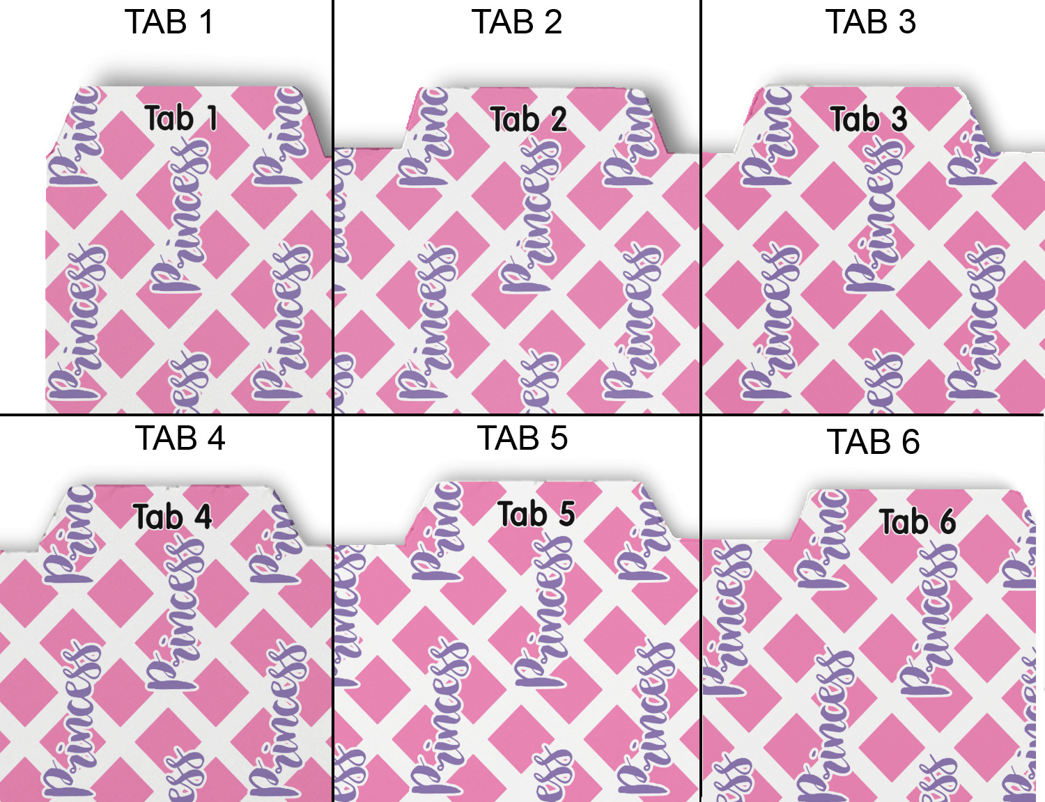 Whether you use binders at school or at work, we have designs to suit all of them. Available in 5 or 6 tab sets, you are sure to find a set to suit your needs. The back of each one is white and can be used to take notes, write vital information on, etc.