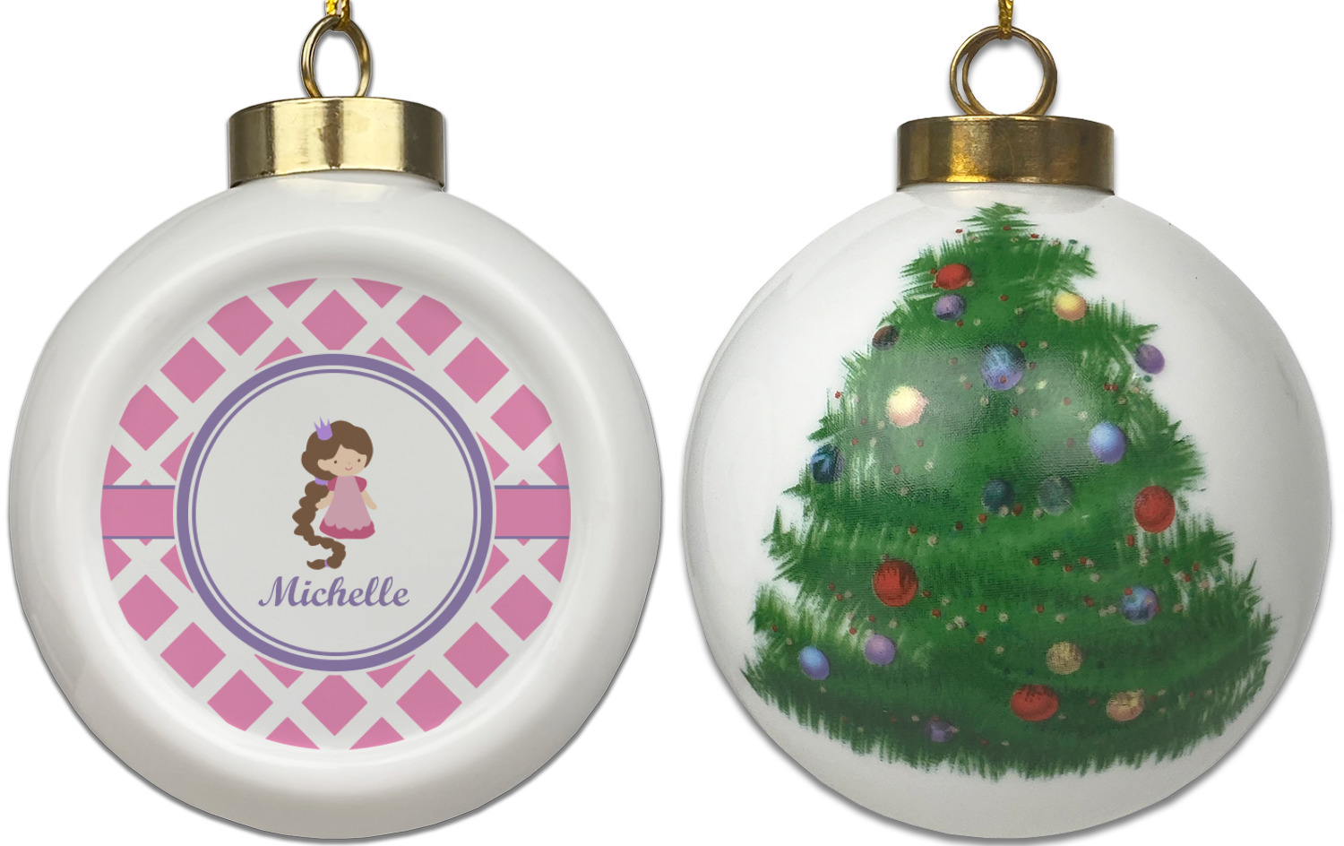 Our Christmas ornaments are a unique ceramic ball shape with a twist as it has a flat face to display your custom design! Select from one of our two design types - Christmas Tree or Poinsettia Garland - to adorn the curved back of your personal design. Each ornament measures 3H x 2.5W x 2D accompanied with a gold string accent for finishing touches to hang on your beautiful Christmas tree!