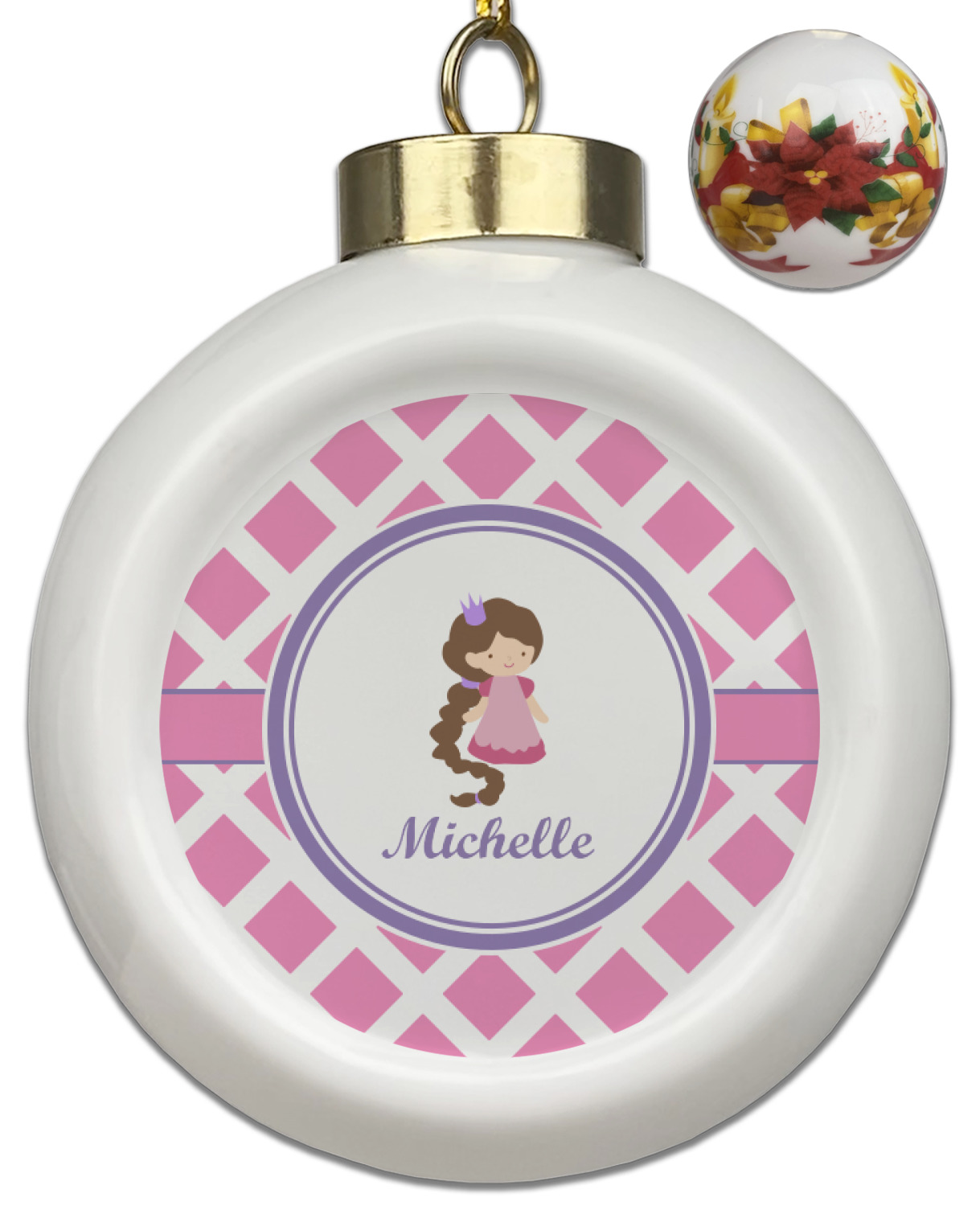 Our Christmas ornaments are a unique ceramic ball shape with a twist as it has a flat face to display your custom design! Select from one of our two design types - Christmas Tree or Poinsettia Garland - to adorn the curved back of your personal design. Each ornament measures 3H x 2.5W x 2D accompanied with a gold string accent for finishing touches to hang on your beautiful Christmas tree!