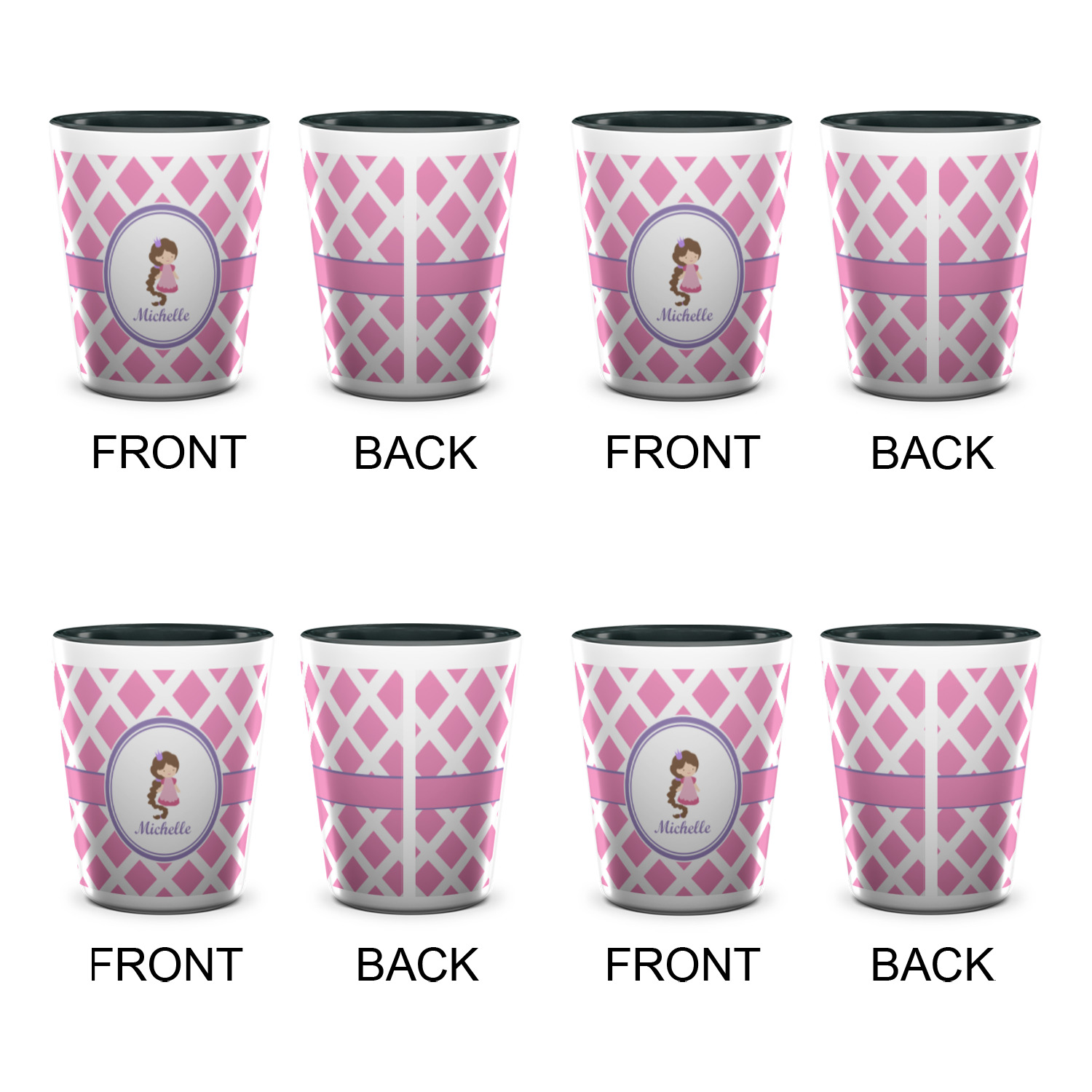 Made from ceramic these shot glasses are printed in full color with the design of your choice. These are a standard 1.5oz size and stand 2.25" tall. Available in a full white ceramic or a two-tone with a black color inside the shot glass. Buy a single or a set of 4, all of which can be designed separately to get you just what you want and need.