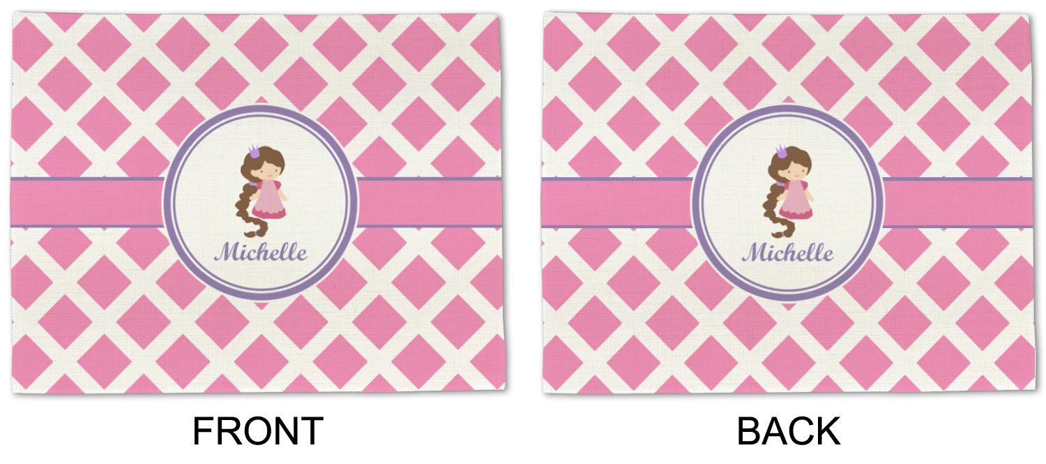 This princess themed print full of little girl pink and purple makes the statement that your little girl is The Princess. This print features every princess's dream full of castles, crowns, her very own prince frog to kiss, and lots of hearts fluttering about. The bottom of the design is a coordinating pink and white diamond pattern.