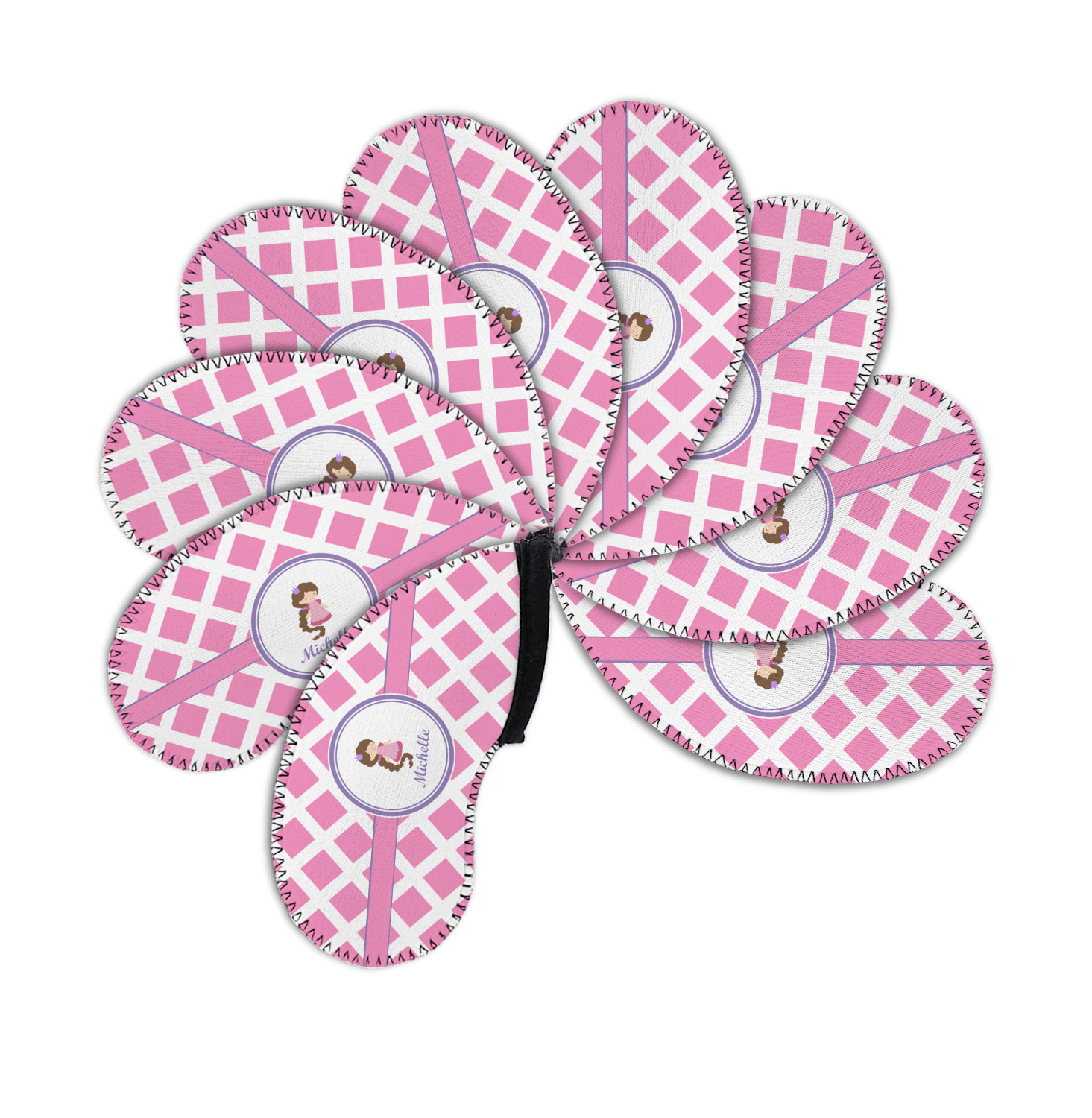 This princess themed print full of little girl pink and purple makes the statement that your little girl is The Princess. This print features every princess's dream full of castles, crowns, her very own prince frog to kiss, and lots of hearts fluttering about. The bottom of the design is a coordinating pink and white diamond pattern.